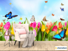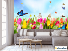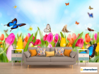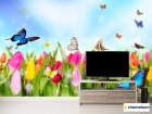 Фотообои «Фотообои Тюльпаны, поле, бабочки», (арт. 10355) - купить в интернет-магазине Хамелеон
