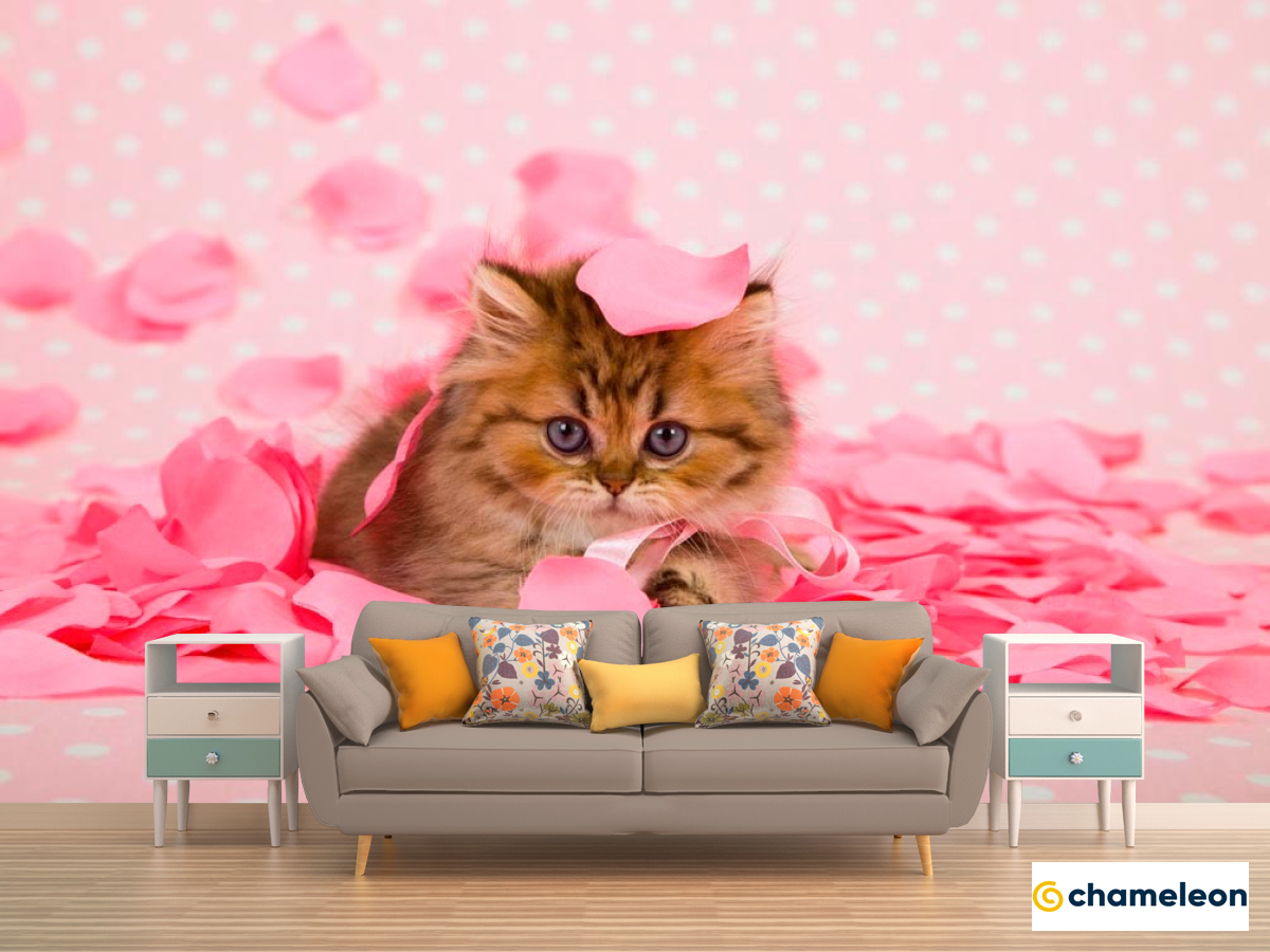 Фотообои «Фотообои Котенок в лепестках», (арт. 12833) - купить в интернет-магазине Хамелеон