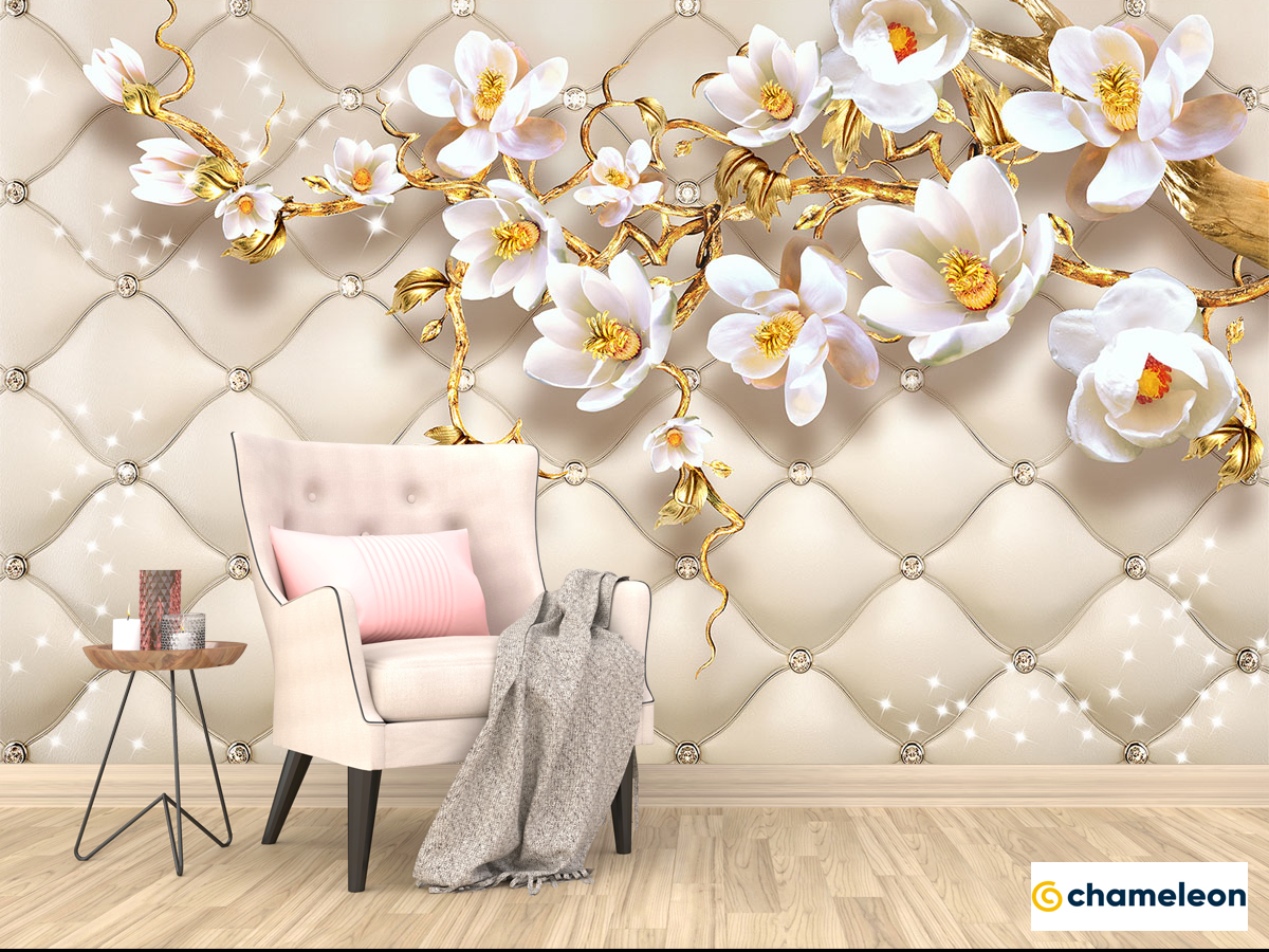 Фотообои «Фотообои золотые цветы на каретной стяжке», (арт. 18792g) - купить в интернет-магазине Хамелеон