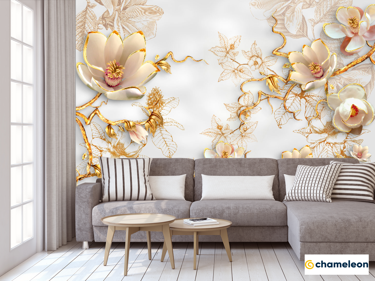 Фотообои «Фотообои золотые цветы», (арт. 19481g) - купить в интернет-магазине Хамелеон