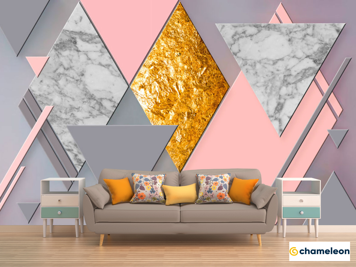 Фотообои «Фотообои серая геометрия с золотом», (арт. 20051g) - купить в интернет-магазине Хамелеон