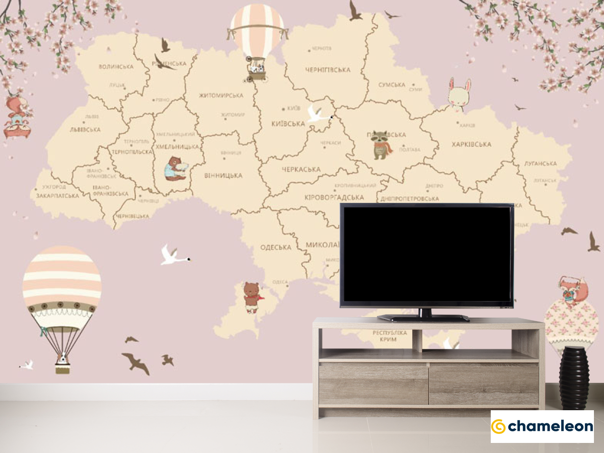 Фотообои «Фотообои Розовая карта Украины в комнате девочки», (арт. 20104) - купить в интернет-магазине Хамелеон
