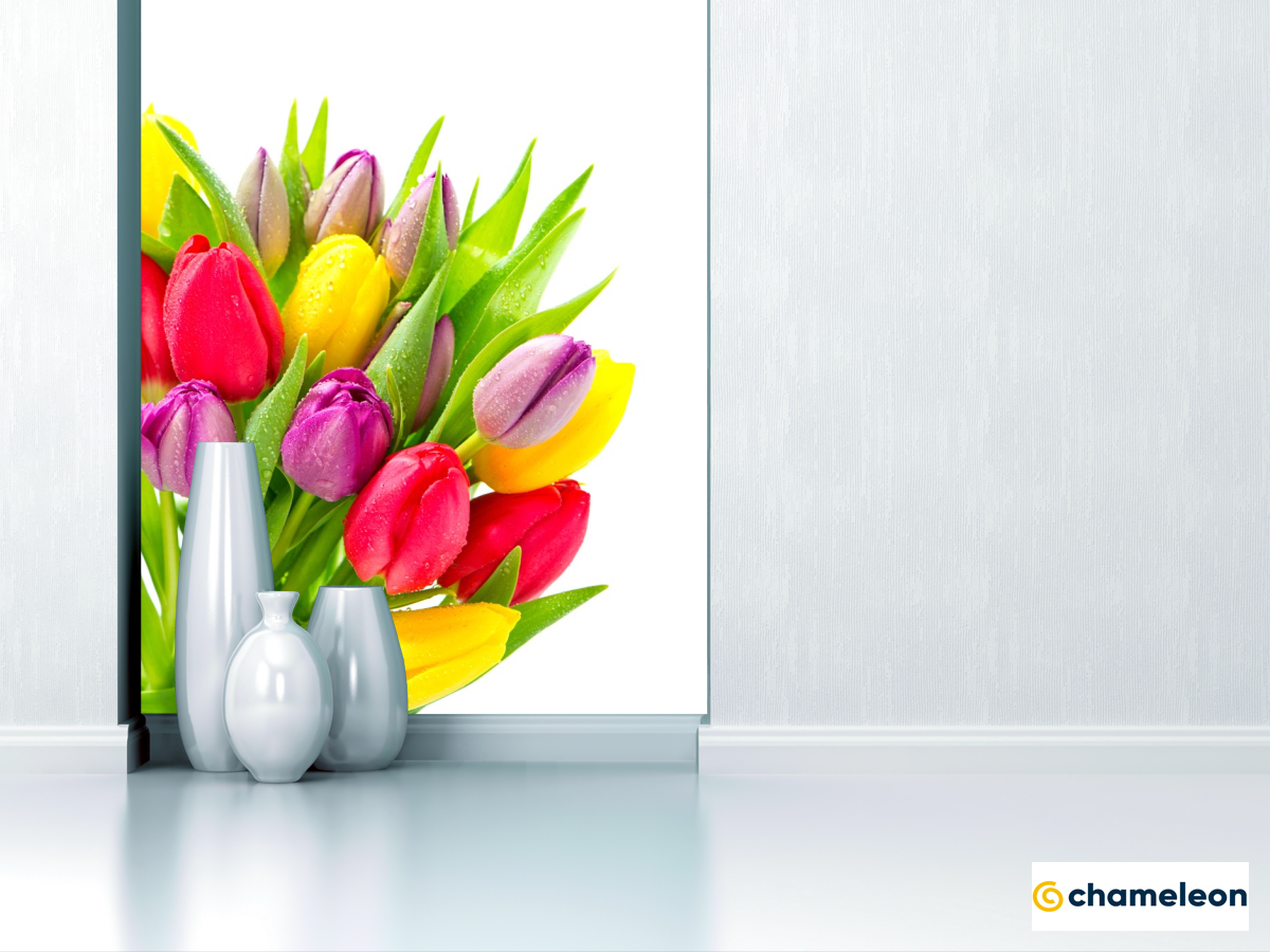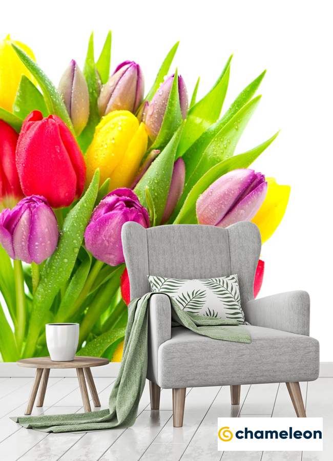 Фотообои «Фотообои разноцветные тюльпаны с каплями», (арт. 20671) - купить в интернет-магазине Хамелеон