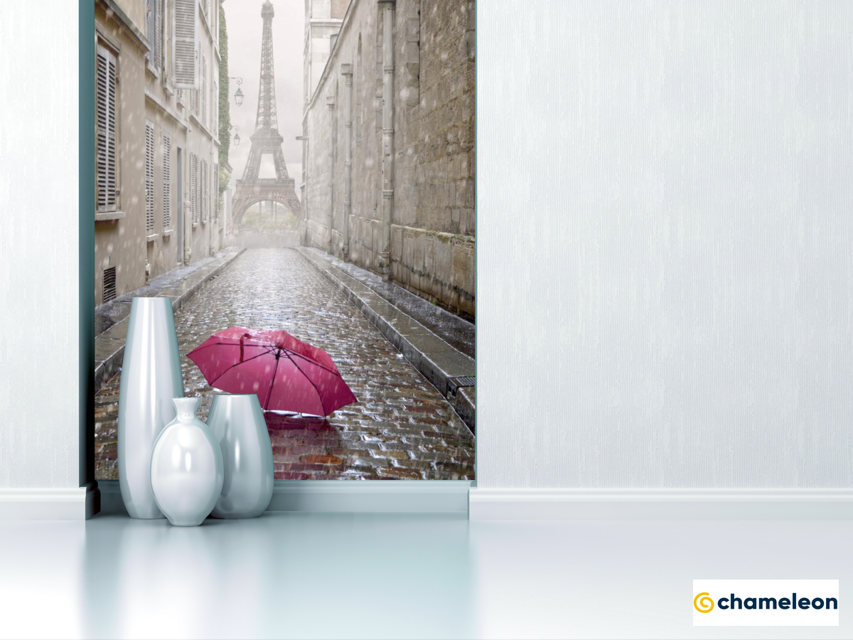 Фотообои «Фотообои красный зонт под дождём в Париже», (арт. 20766) - купить в интернет-магазине Хамелеон