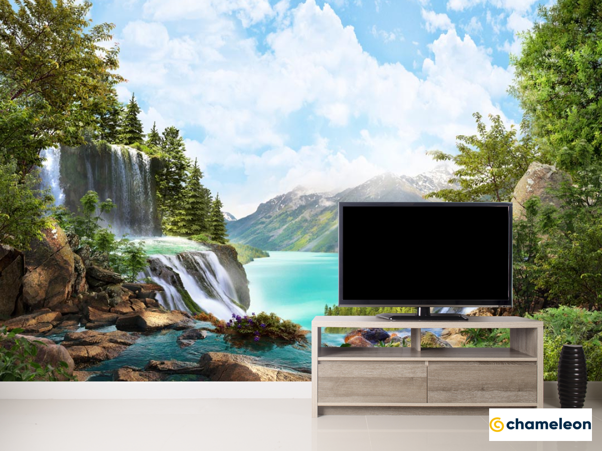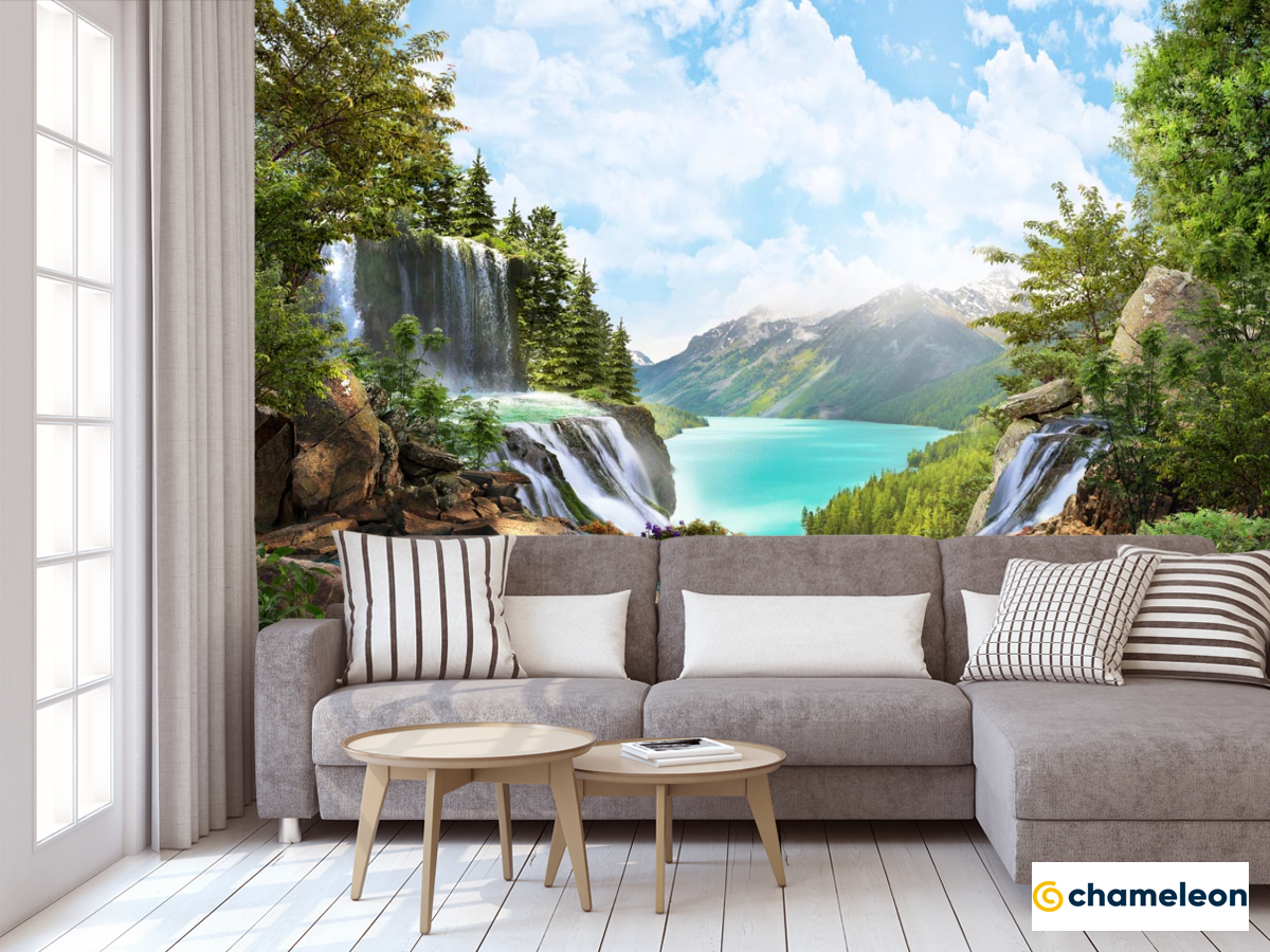 Фотообои «Фотообои водопад над озером в горах», (арт. 20837) - купить в интернет-магазине Хамелеон