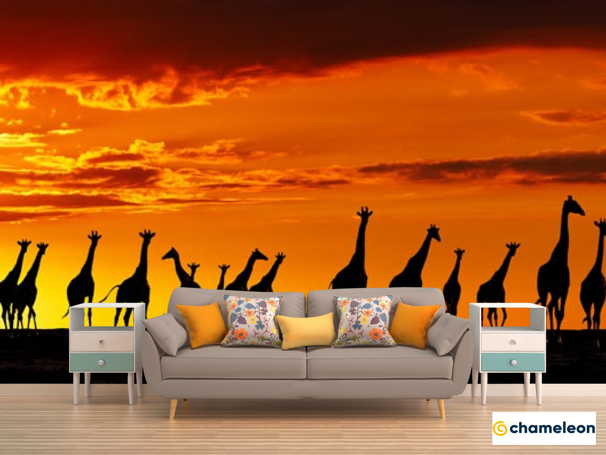 Фотообои «Фотообои много жирафов и закат», (арт. 20902) - купить в интернет-магазине Хамелеон
