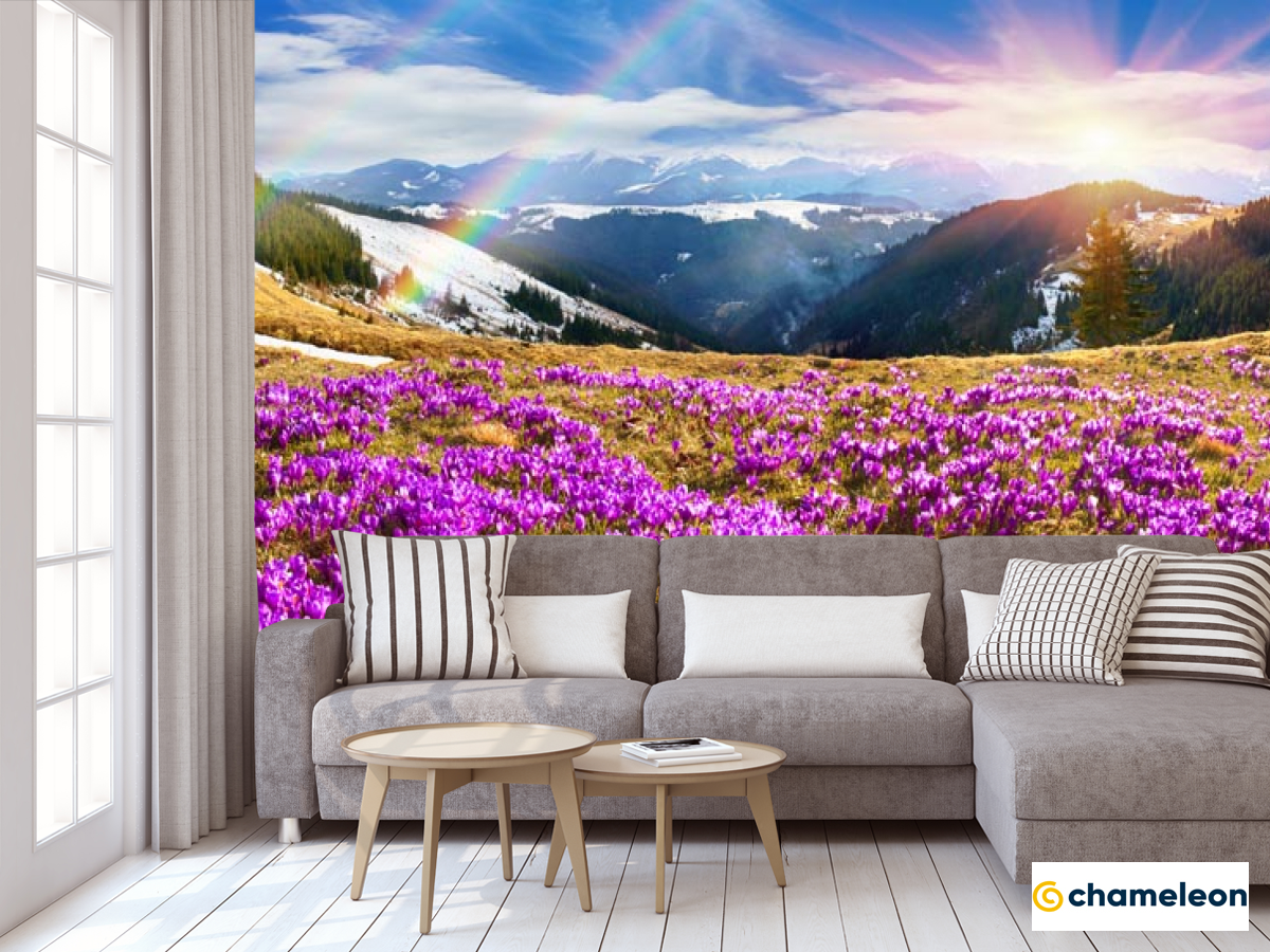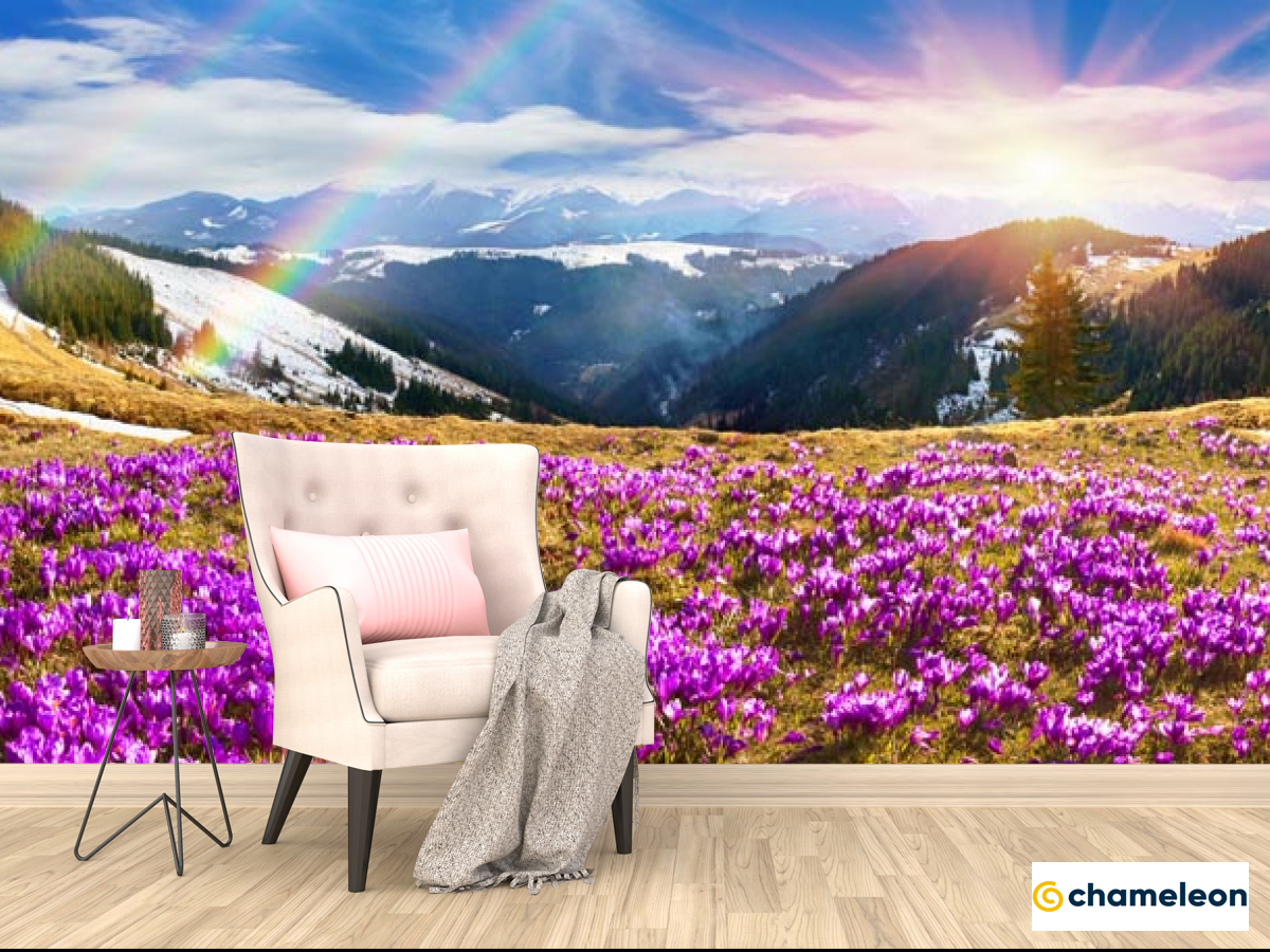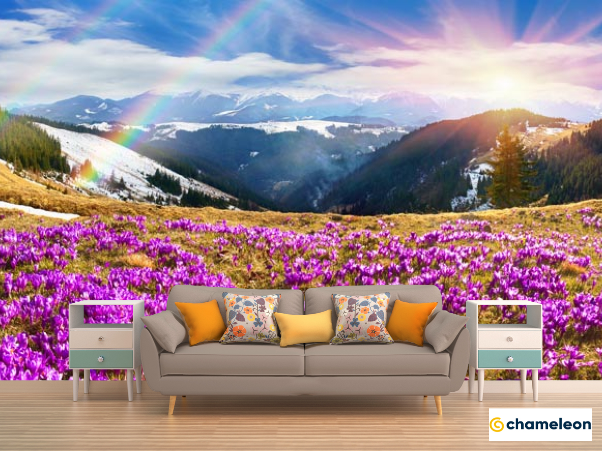 Фотообои «Фотообои поляна с сиреневыми цветами в горах», (арт. 21009) - купить в интернет-магазине Хамелеон