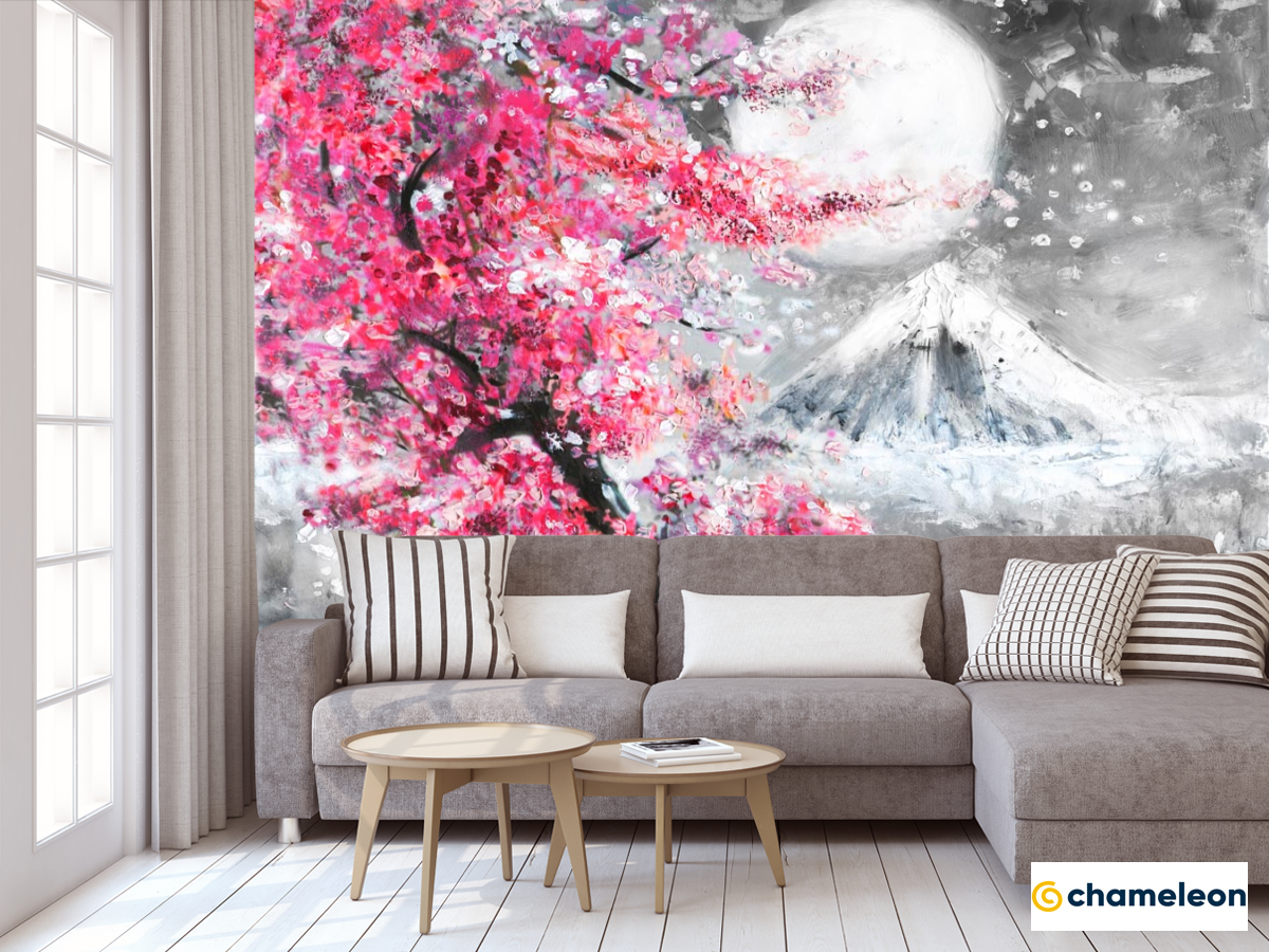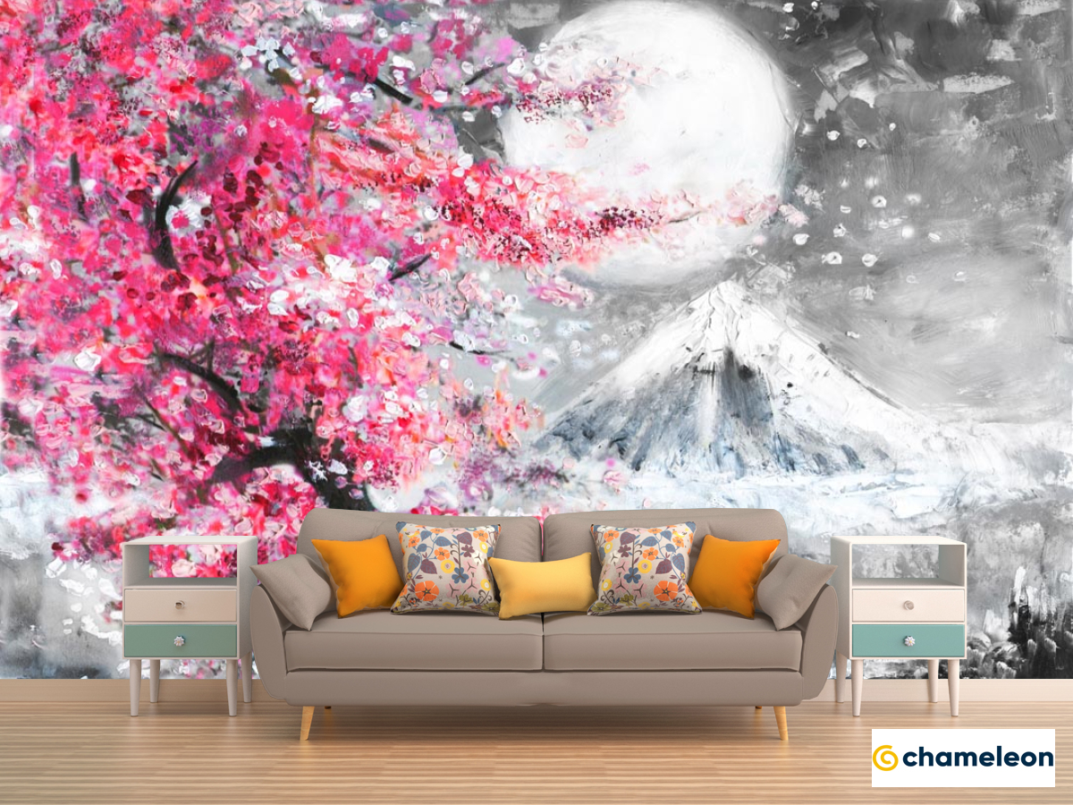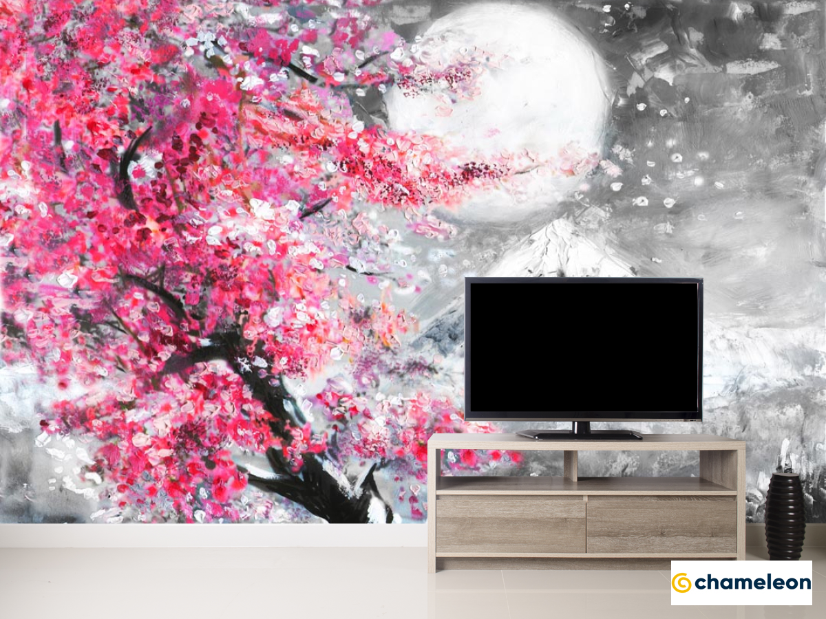 Фотообои «Фотообои картина белая луна над розовым деревом», (арт. 21120) - купить в интернет-магазине Хамелеон