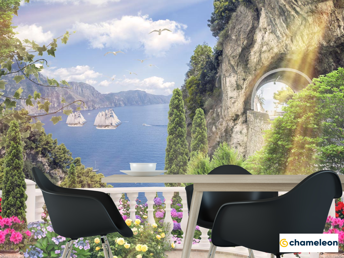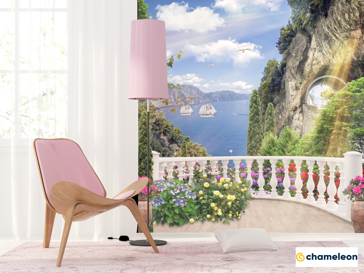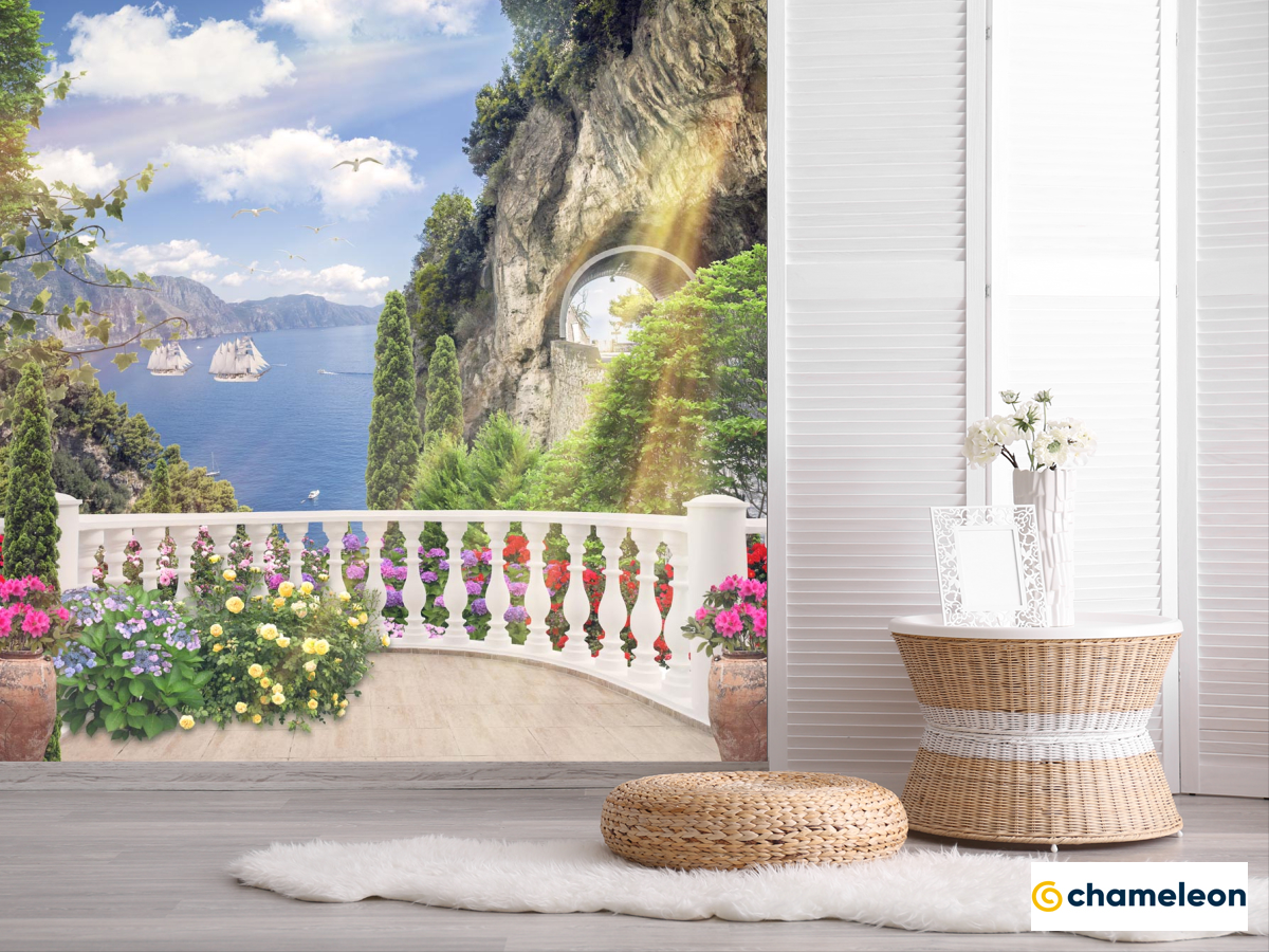 Фотообои «Фотообои море за белым забором на скале», (арт. 21129) - купить в интернет-магазине Хамелеон