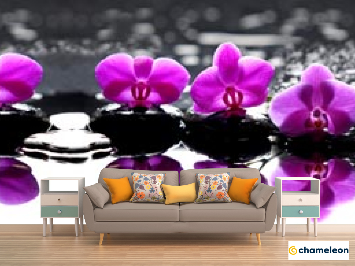 Фотообои «Фотообои фиолетовые орхидеи на камнях», (арт. 21195) - купить в интернет-магазине Хамелеон