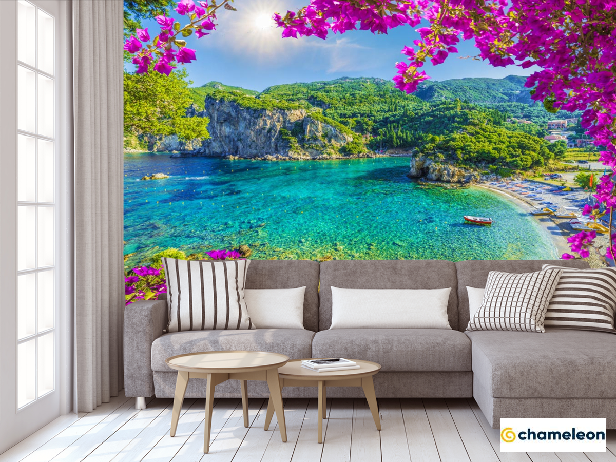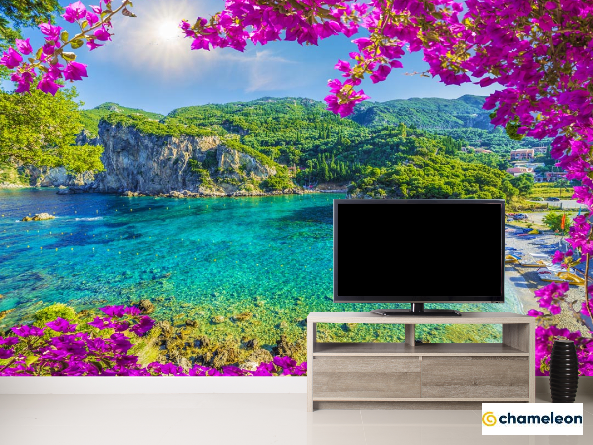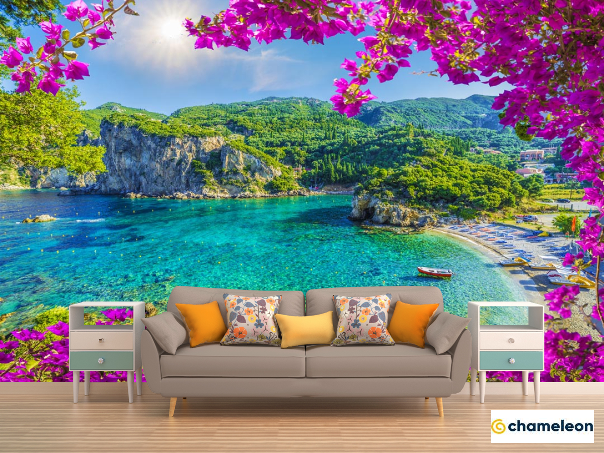 Фотообои «Фотообои вид на гавань через розовые ветки», (арт. 21400) - купить в интернет-магазине Хамелеон