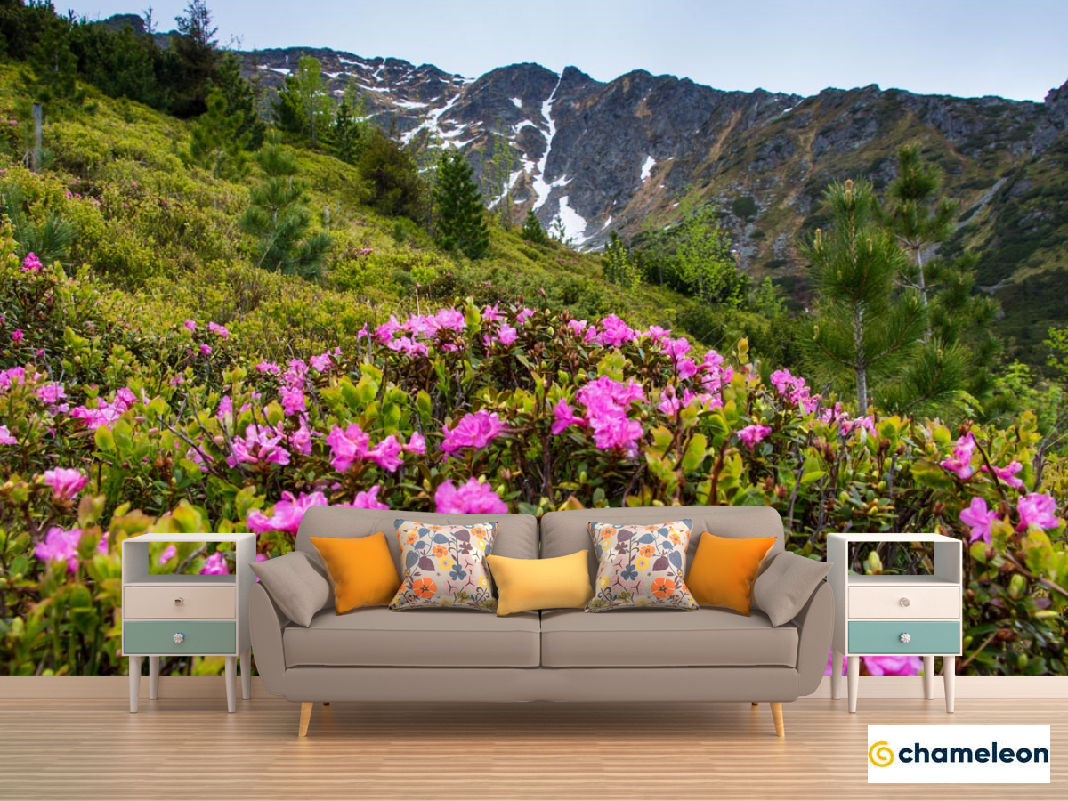 Фотообои «Фотообои цветы на поляне в горах», (арт. 21449) - купить в интернет-магазине Хамелеон