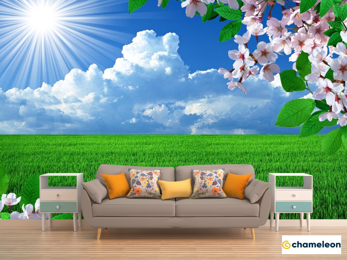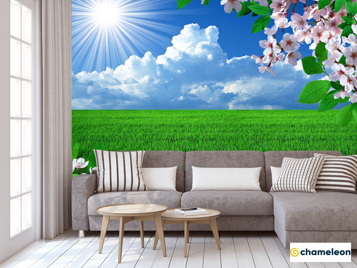 Фотообои «Фотообои абрикосовый цвет над зеленым полем», (арт. 21485) - купить в интернет-магазине Хамелеон
