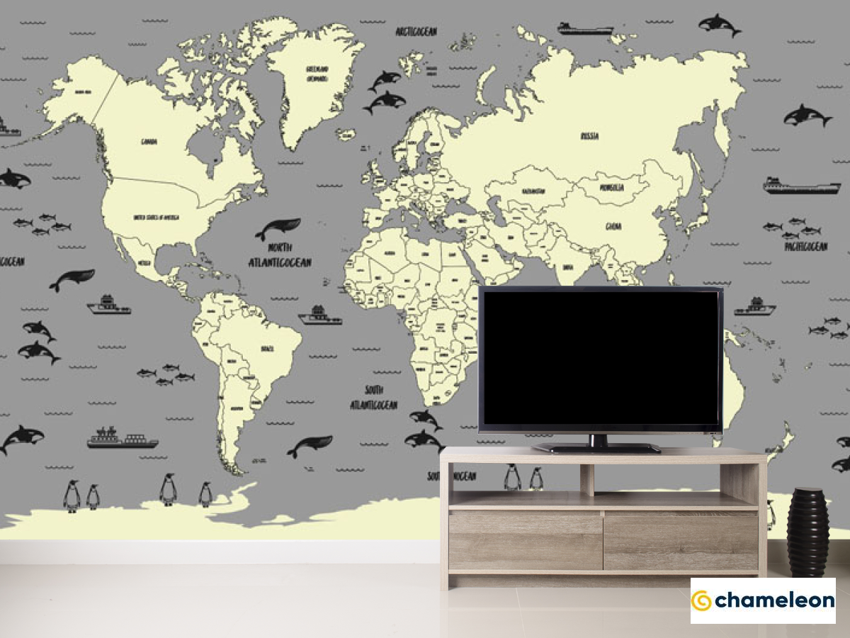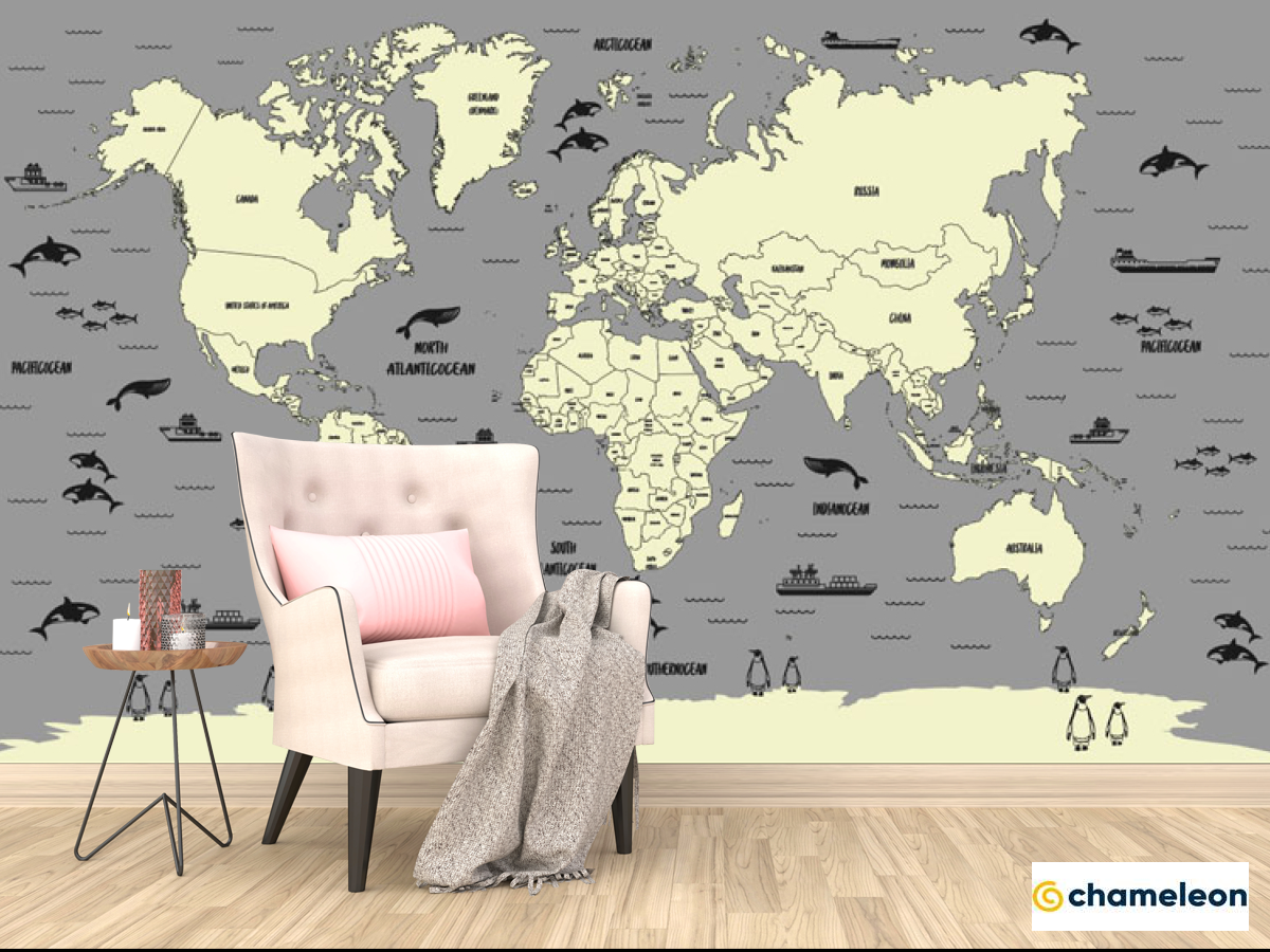 Фотообои «Фотообои Карта в сером цвете в детскую», (арт. 22044) - купить в интернет-магазине Хамелеон