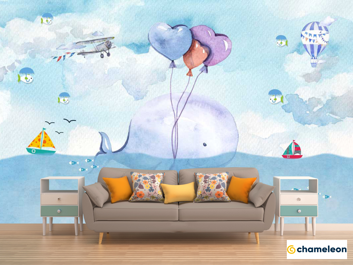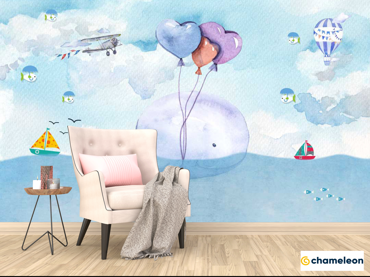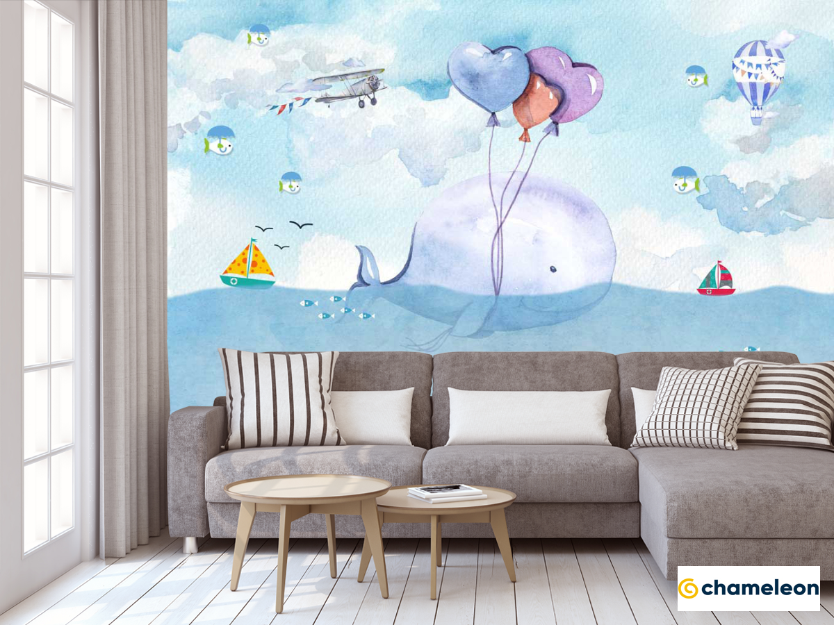 Фотообои «Фотообои Кит с воздушным шариком», (арт. 22081) - купить в интернет-магазине Хамелеон