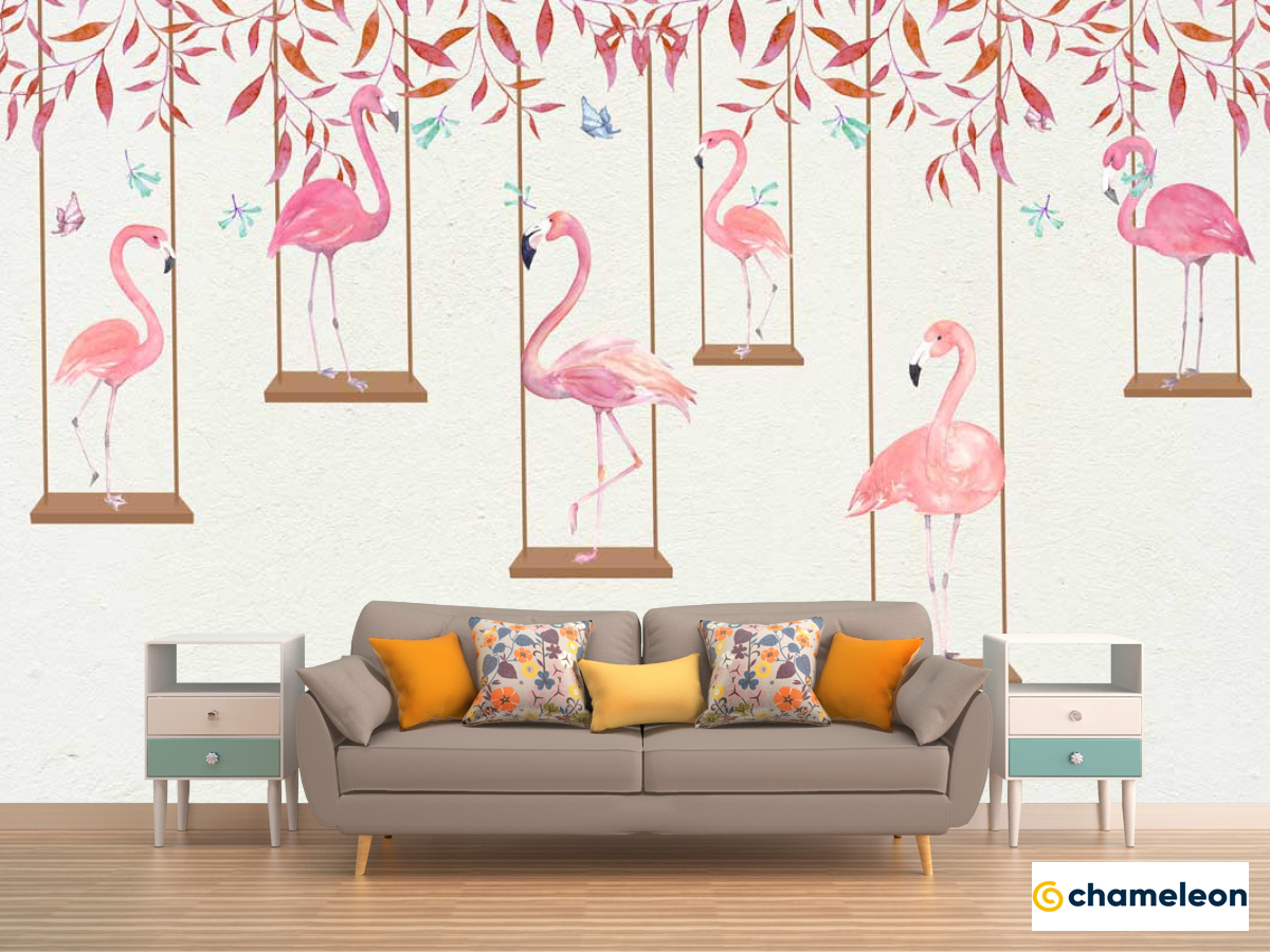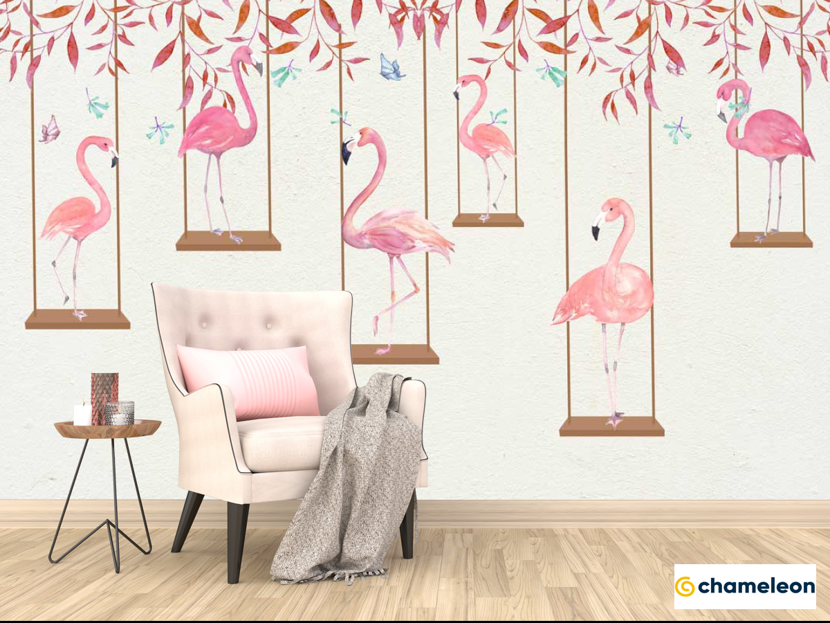 Фотообои «Фотообои Фламинго на качелях», (арт. 22084) - купить в интернет-магазине Хамелеон