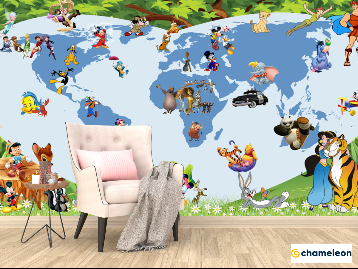 Фотообои «Фотообои Карта с диснеевскими героями», (арт. 22139) - купить в интернет-магазине Хамелеон