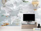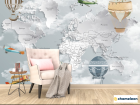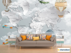 Фотообои «Фотообои Детская карта с воздушными шарами в тумане.», (арт. 22144) - купить в интернет-магазине Хамелеон