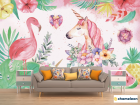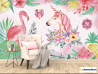Фотообои «Фотообои Фламинго и единорог», (арт. 22247) - купить в интернет-магазине Хамелеон