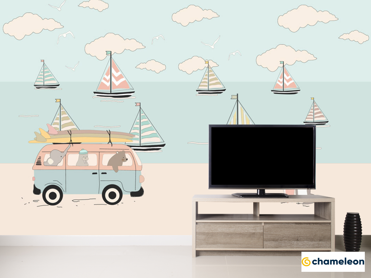 Фотообои «Фотообои Машинки на пляже», (арт. 22259) - купить в интернет-магазине Хамелеон