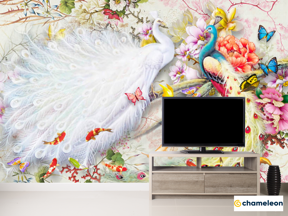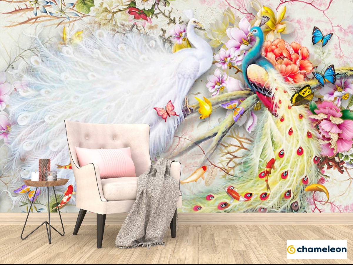 Фотообои «Фотообои Два шикарных павлина в японском стиле», (арт. 22477) - купить в интернет-магазине Хамелеон
