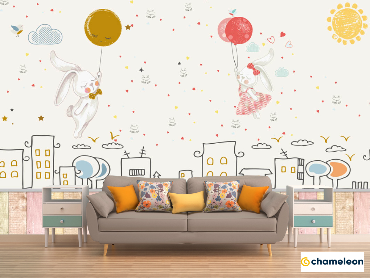 Фотообои «Фотообои Летящие зайки», (арт. 23029) - купить в интернет-магазине Хамелеон