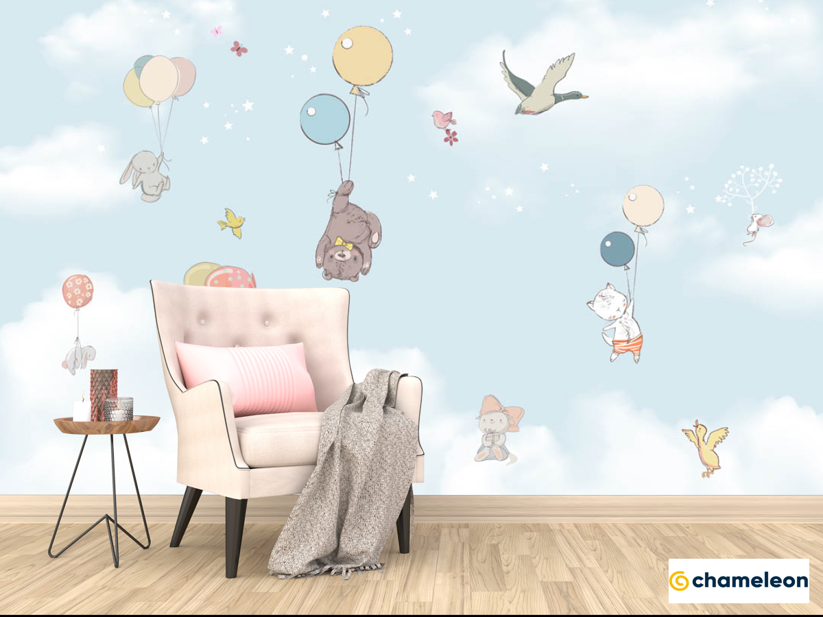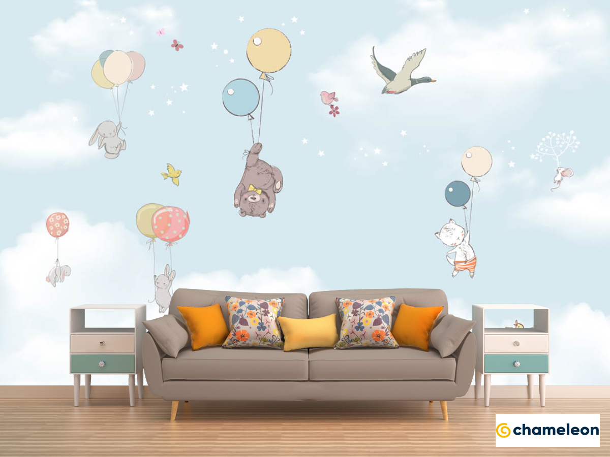 Фотообои «Фотообои Звери в небе на воздушных шариках», (арт. 23033) - купить в интернет-магазине Хамелеон
