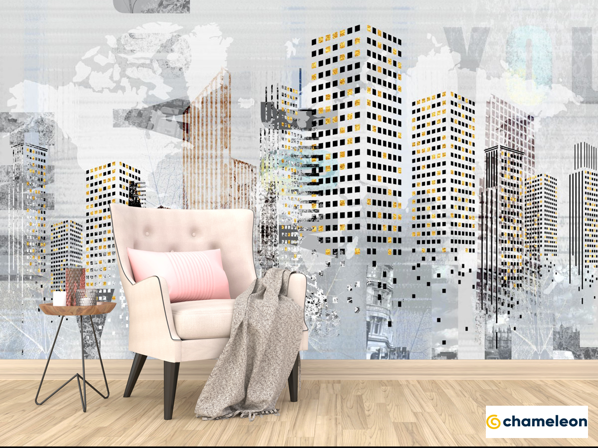 Фотообои «Фотообои современный город с золочением», (арт. 23782g) - купить в интернет-магазине Хамелеон