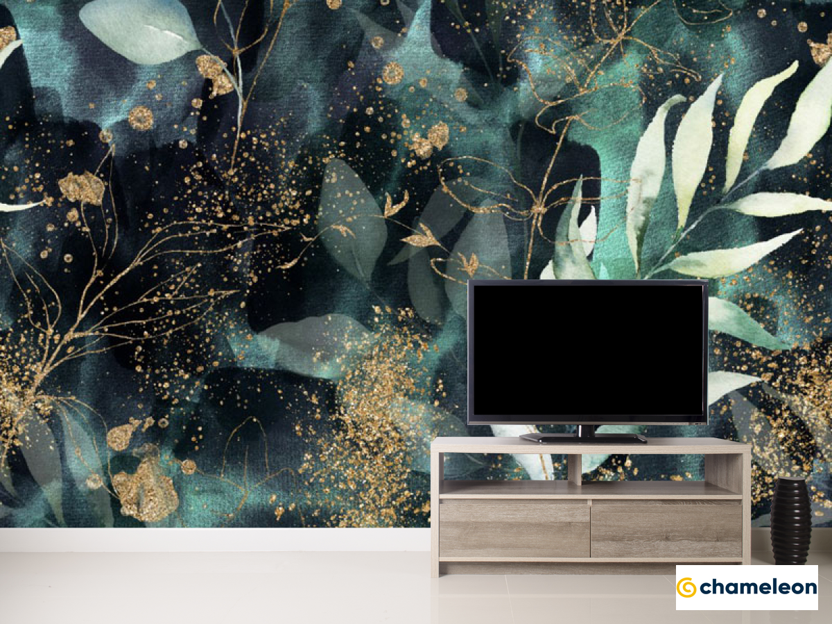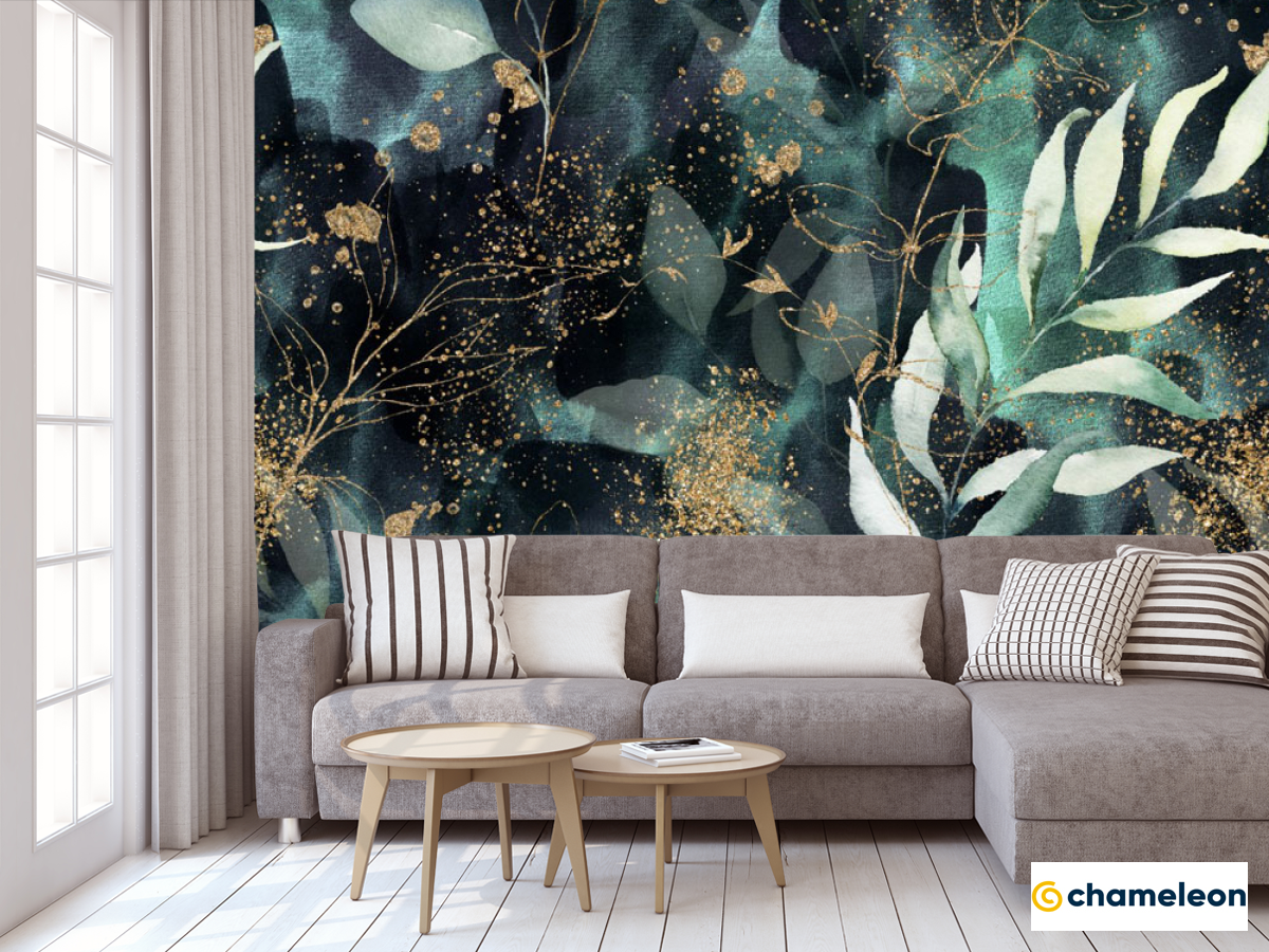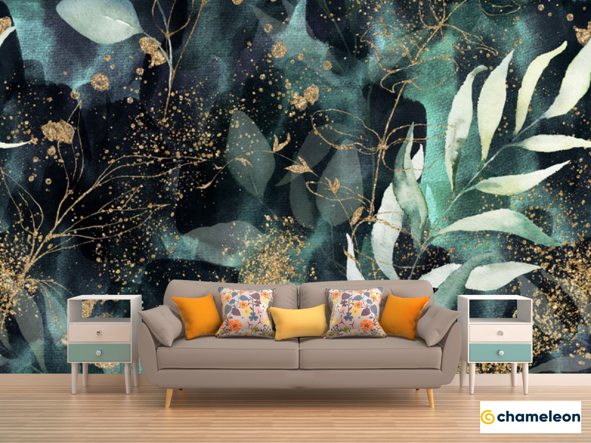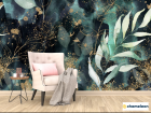 Фотообои зеленые листья и золото