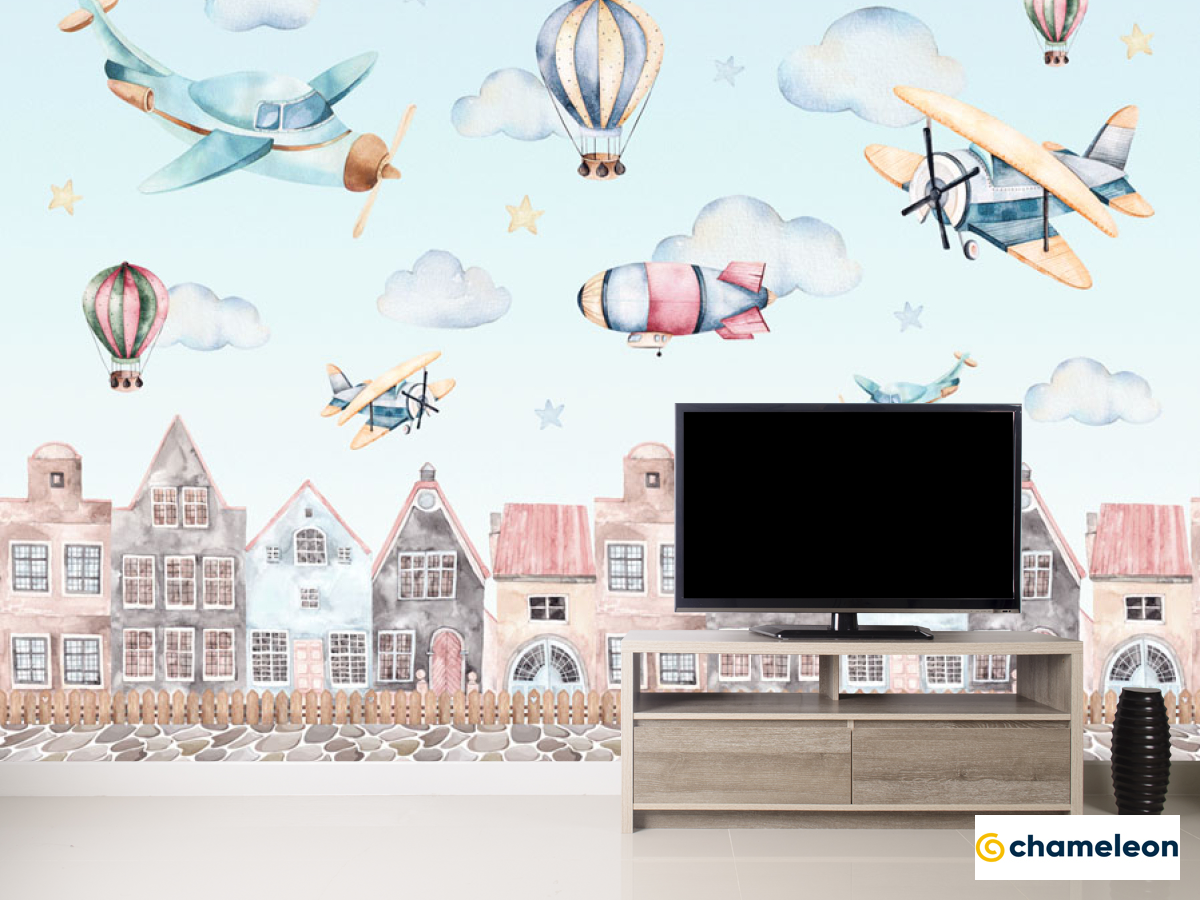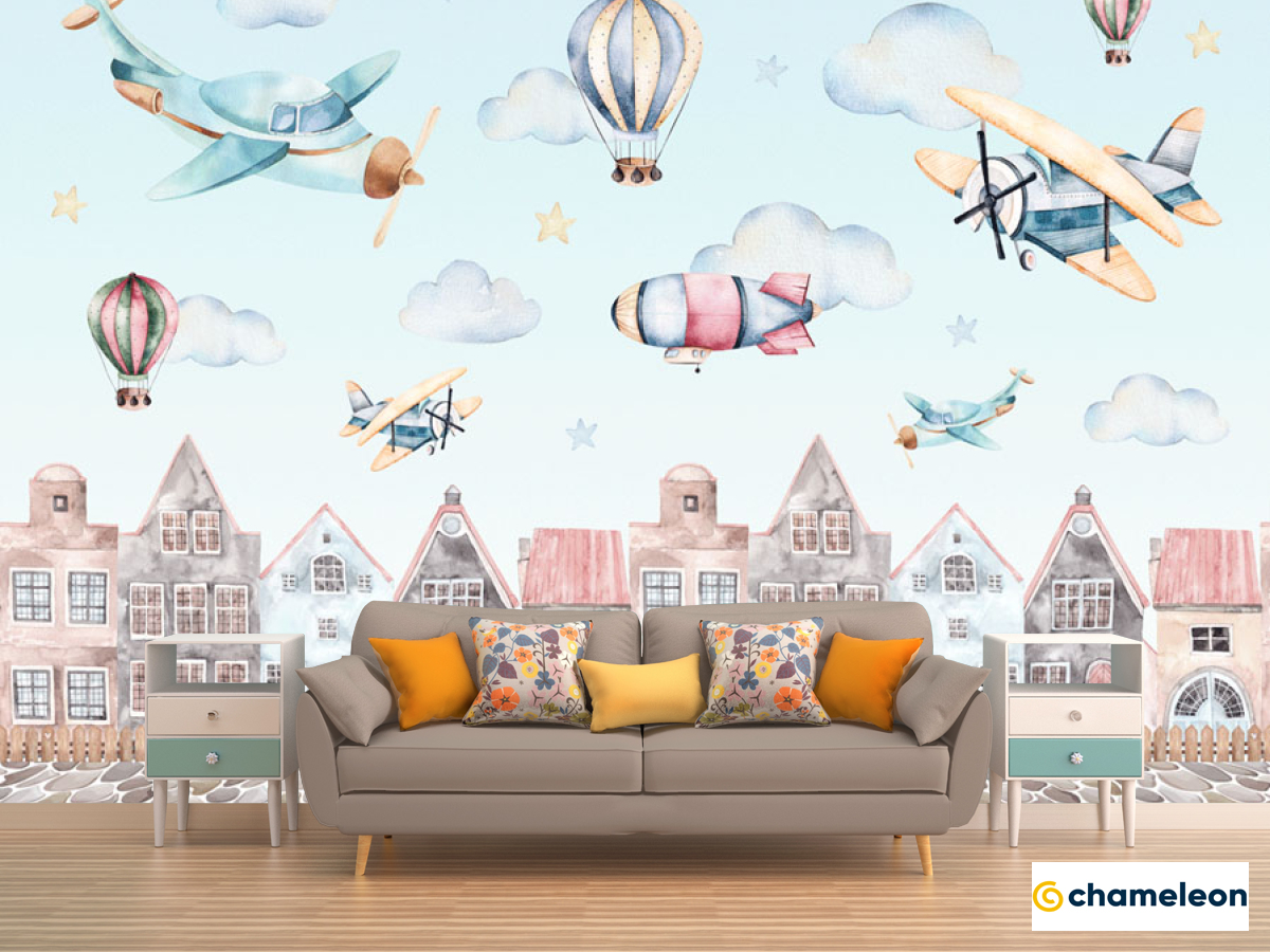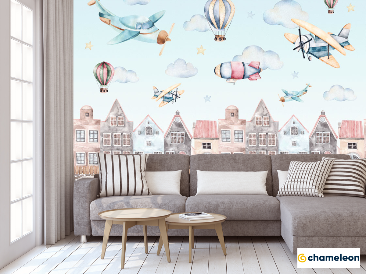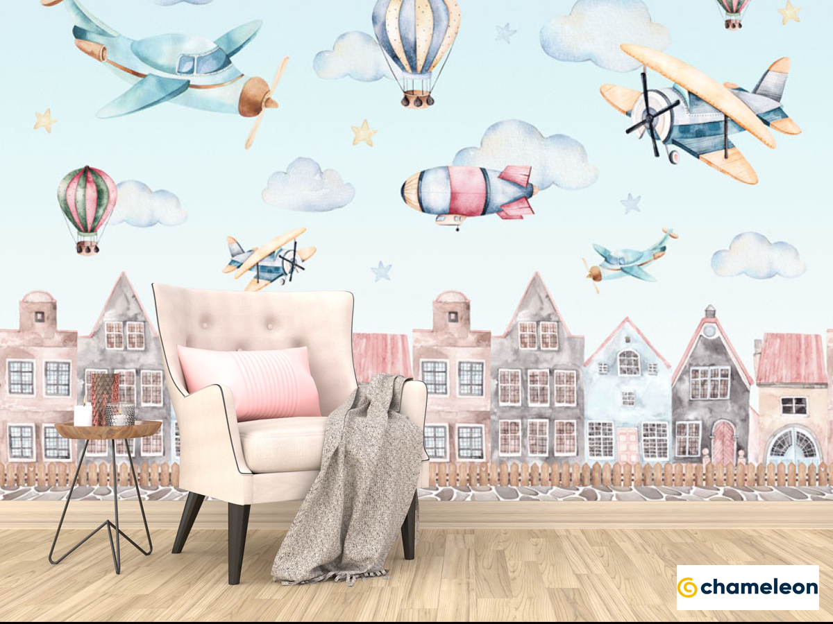 Фотообои «Фотообои Самолётики над домиками», (арт. 24102) - купить в интернет-магазине Хамелеон