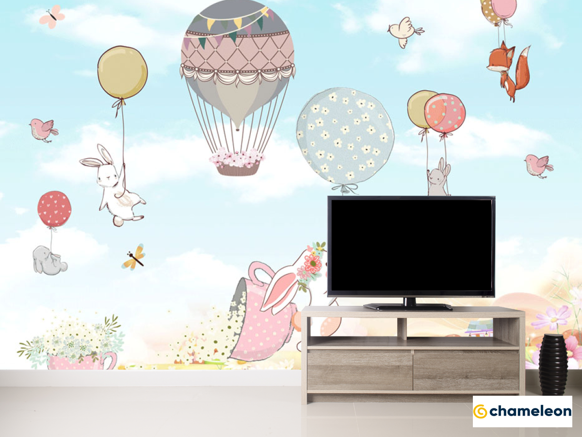 Фотообои «Фотообои Зайки на воздушных шарах», (арт. 24103) - купить в интернет-магазине Хамелеон
