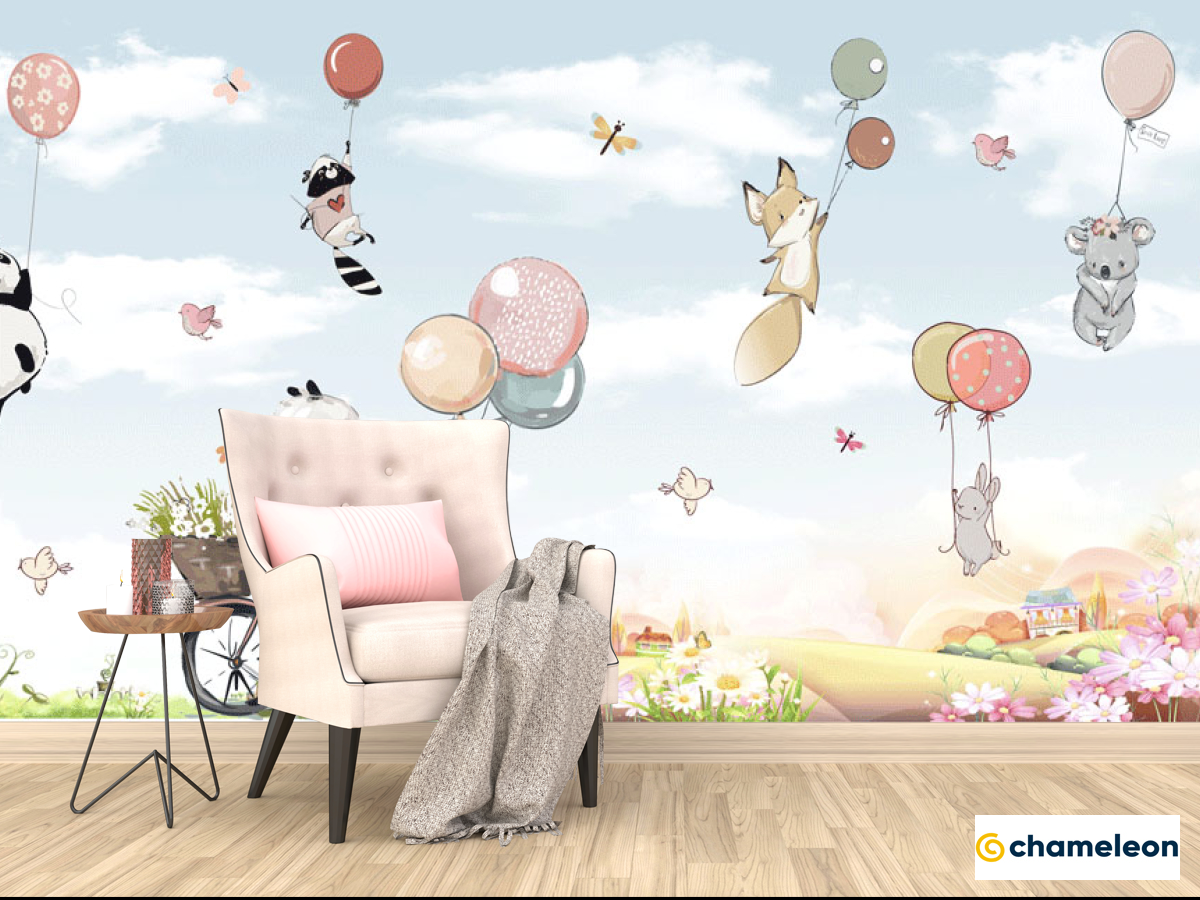 Фотообои «Фотообои Звери и воздушные шарики», (арт. 24105) - купить в интернет-магазине Хамелеон