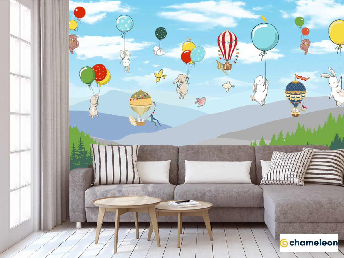 Фотообои «Фотообои Звери на воздушных шариках», (арт. 24108) - купить в интернет-магазине Хамелеон