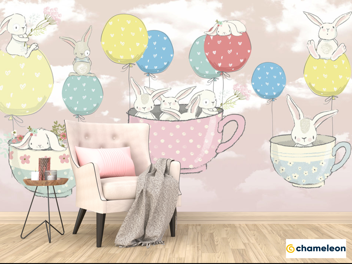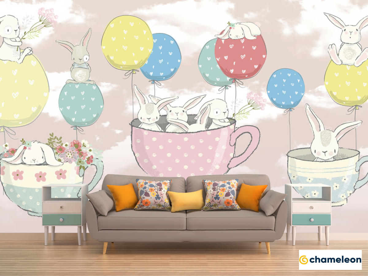 Фотообои «Фотообои Зайки в чашках», (арт. 24194) - купить в интернет-магазине Хамелеон