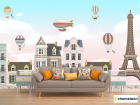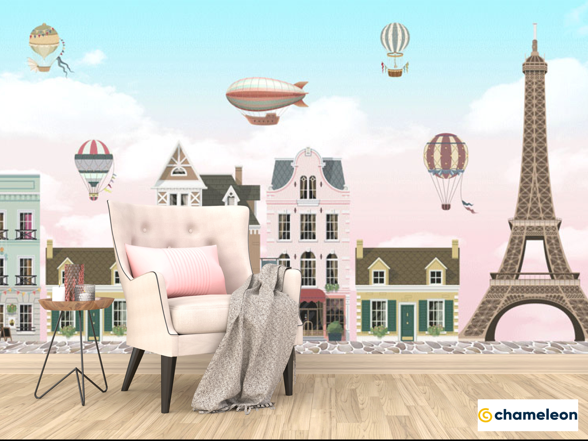 Фотообои «Фотообои Домики и эйфилевая башня», (арт. 24233) - купить в интернет-магазине Хамелеон