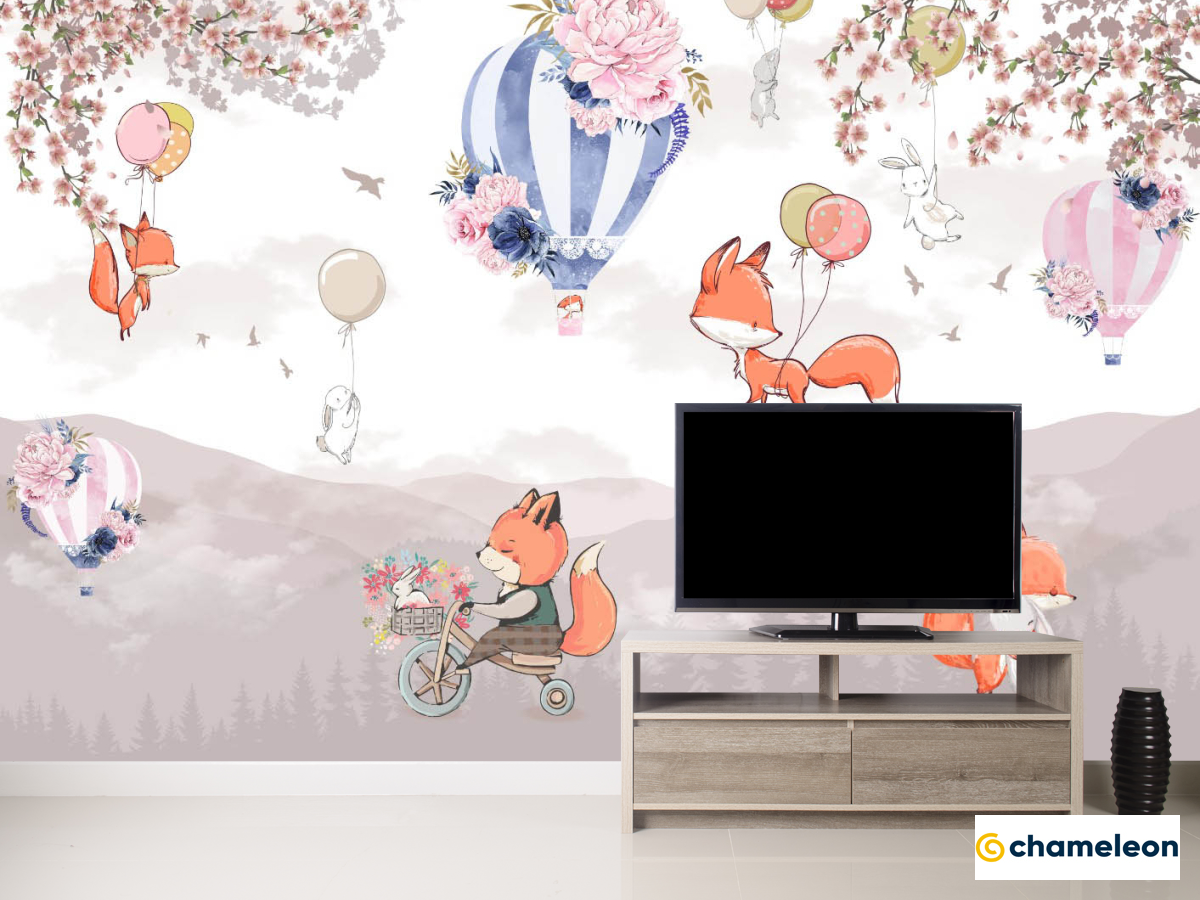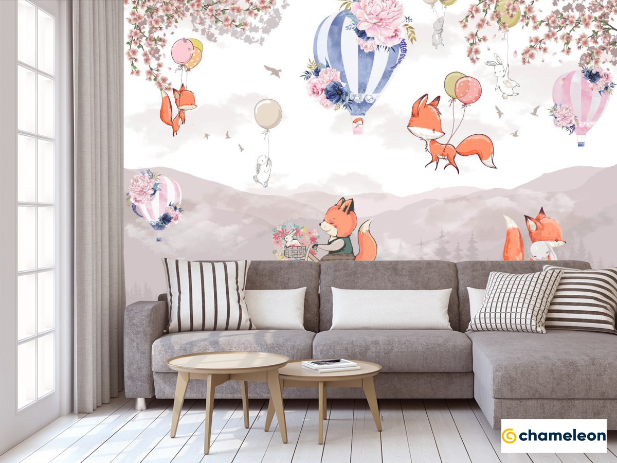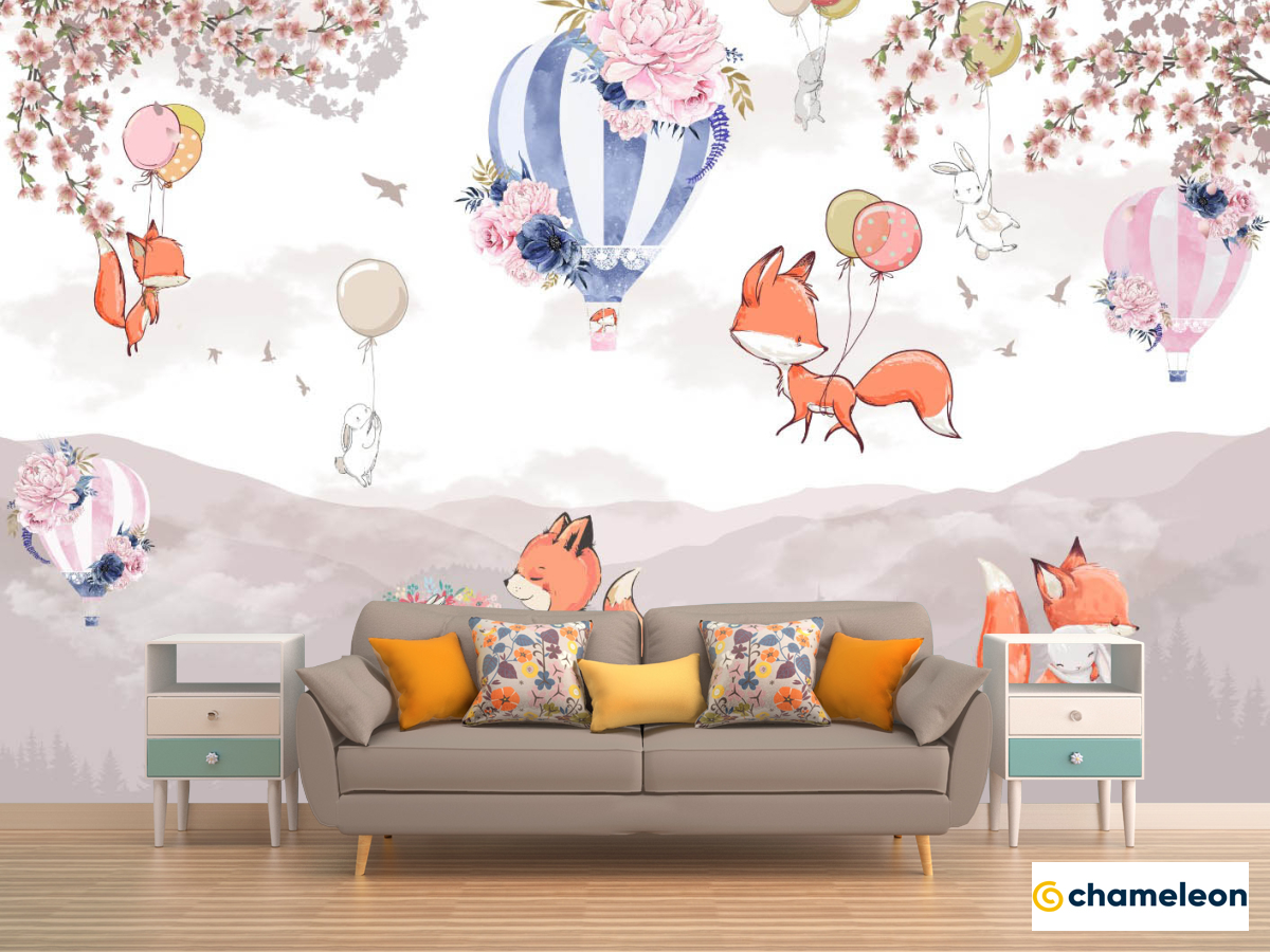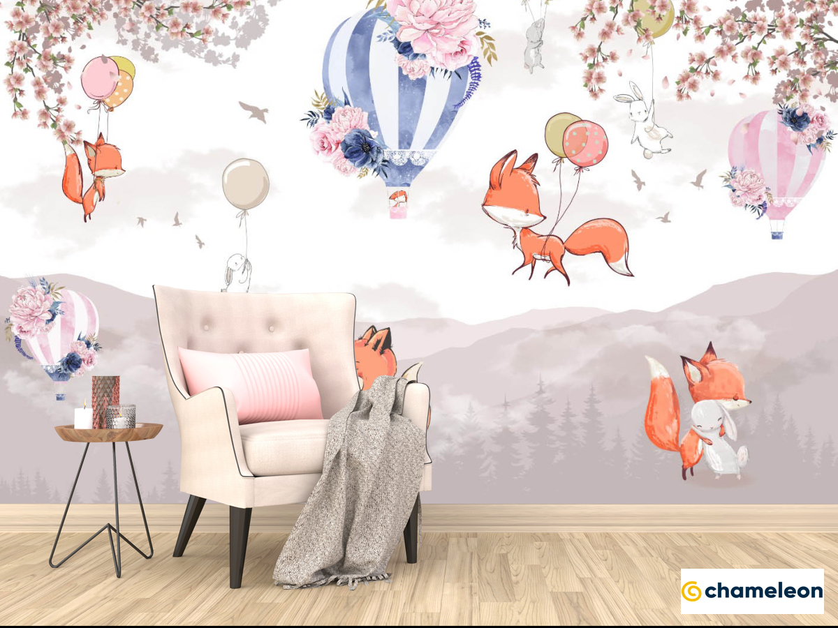 Фотообои «Фотообои Лисички на воздушных шарах», (арт. 24273) - купить в интернет-магазине Хамелеон