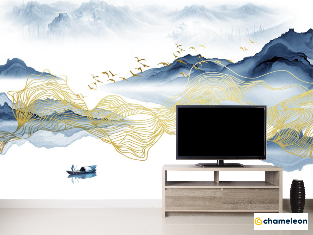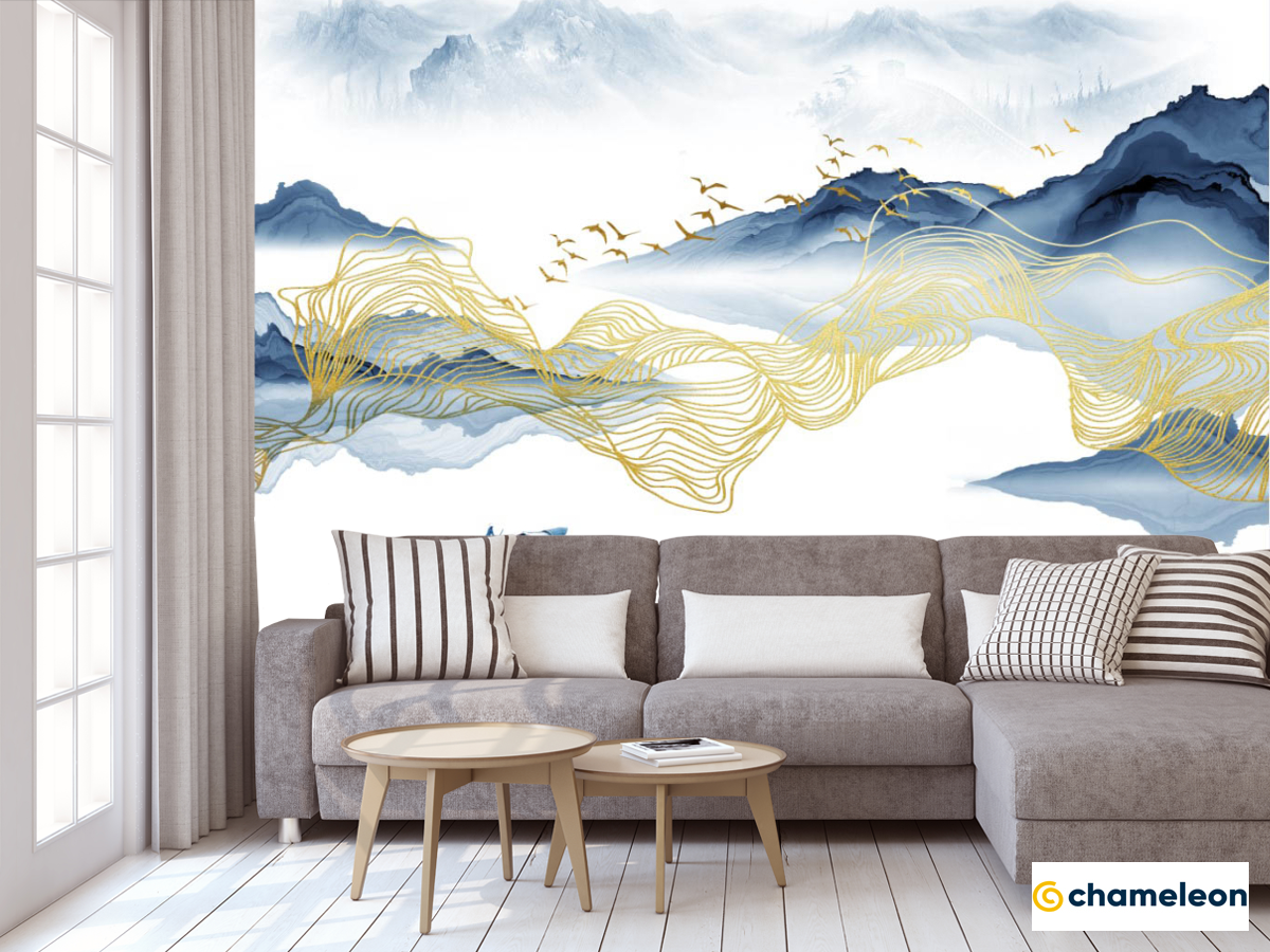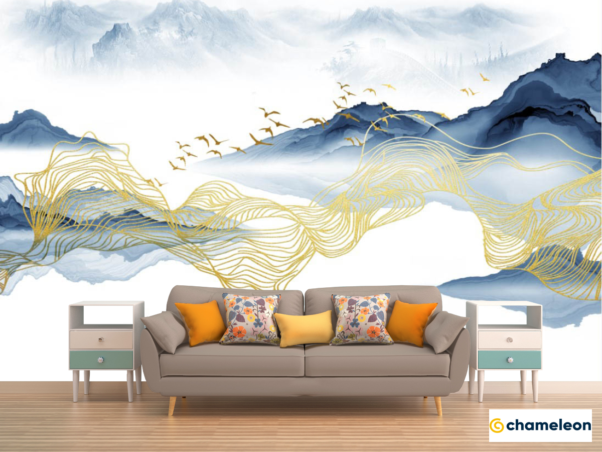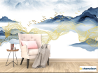 Фотообои «Фотообои Волны из синей и золотой абстракции», (арт. 24982) - купить в интернет-магазине Хамелеон