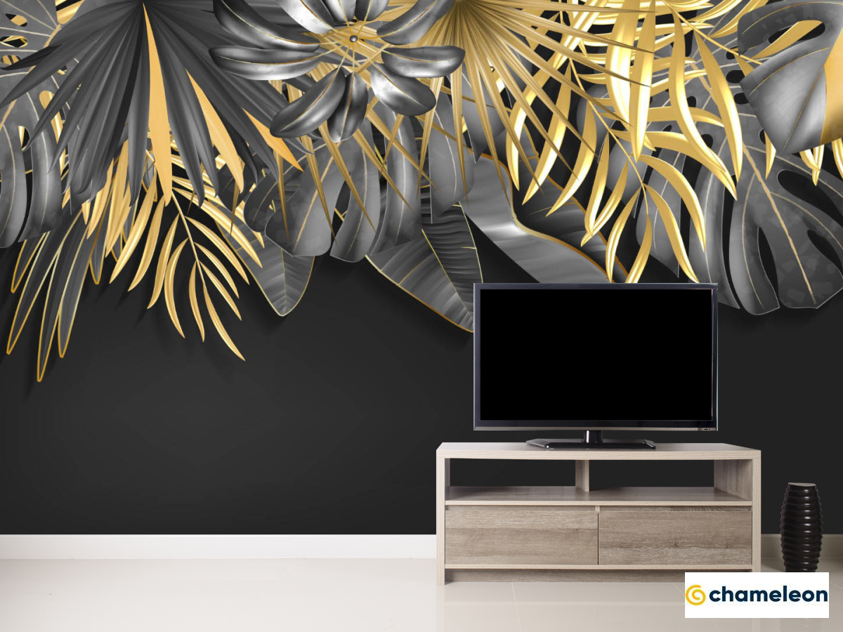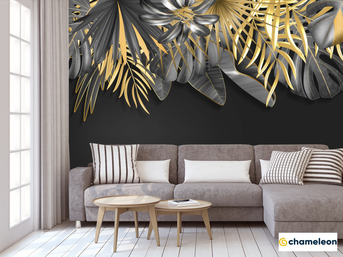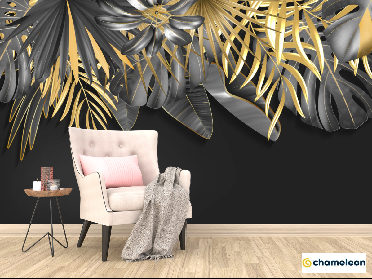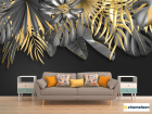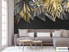 Фотообои Золотые листья на черном