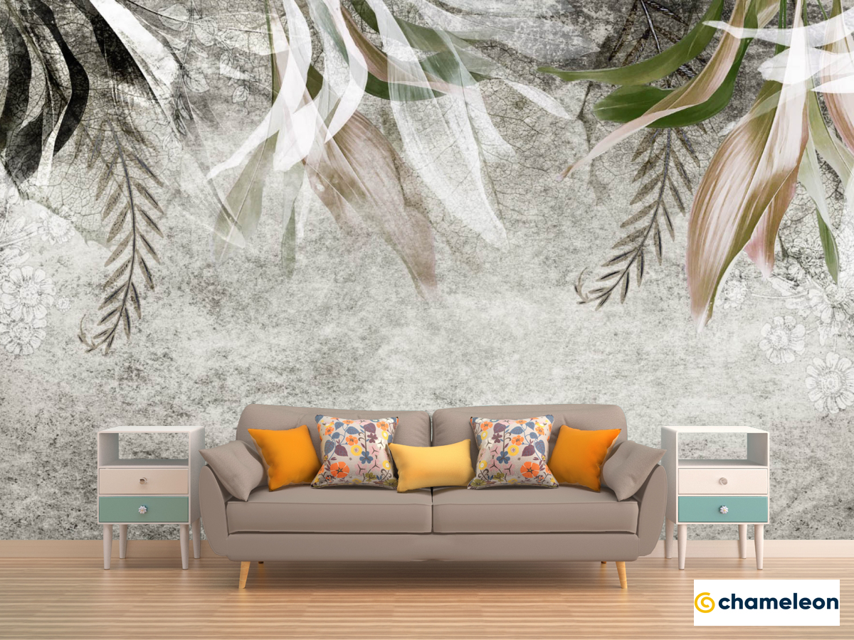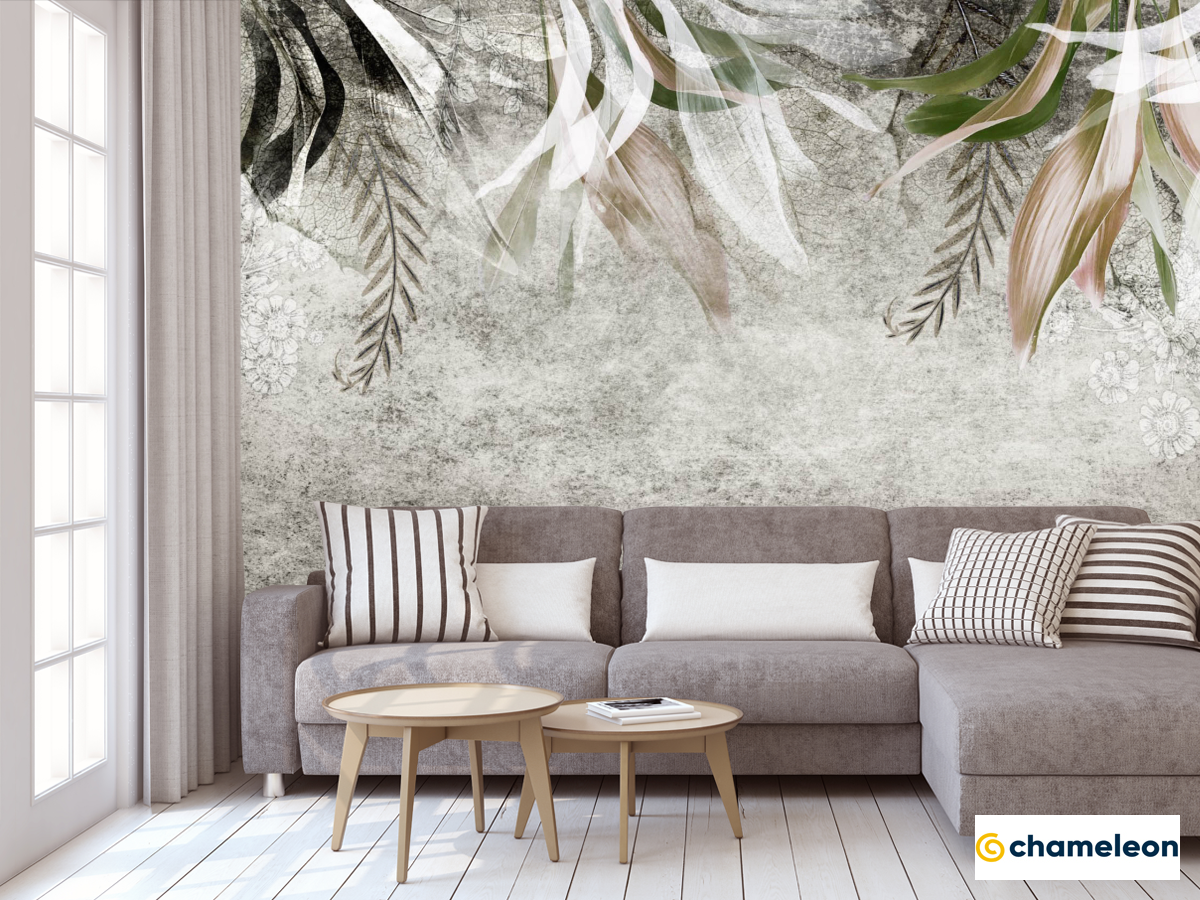 Фотообои «Фотообои Листья на бетоне», (арт. 28610) - купить в интернет-магазине Хамелеон