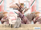 Фотообои Розовые тропические листья