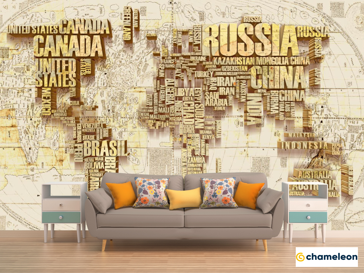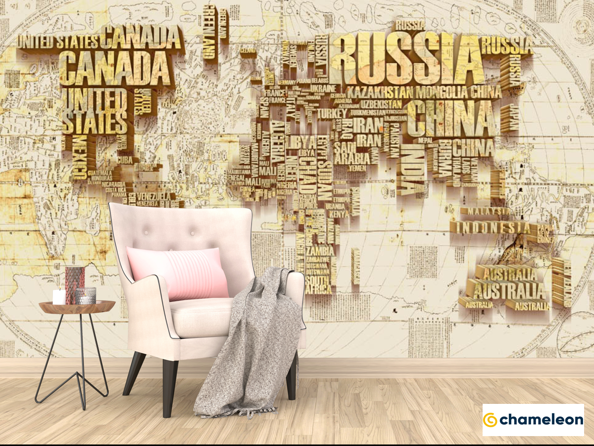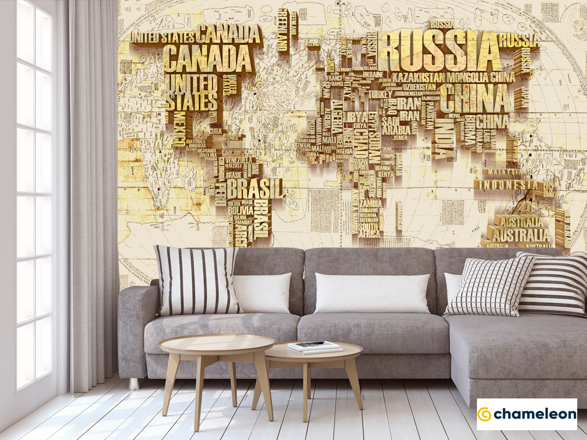 Фотообои «Фотообои Карта из золотого текста», (арт. 28946) - купить в интернет-магазине Хамелеон