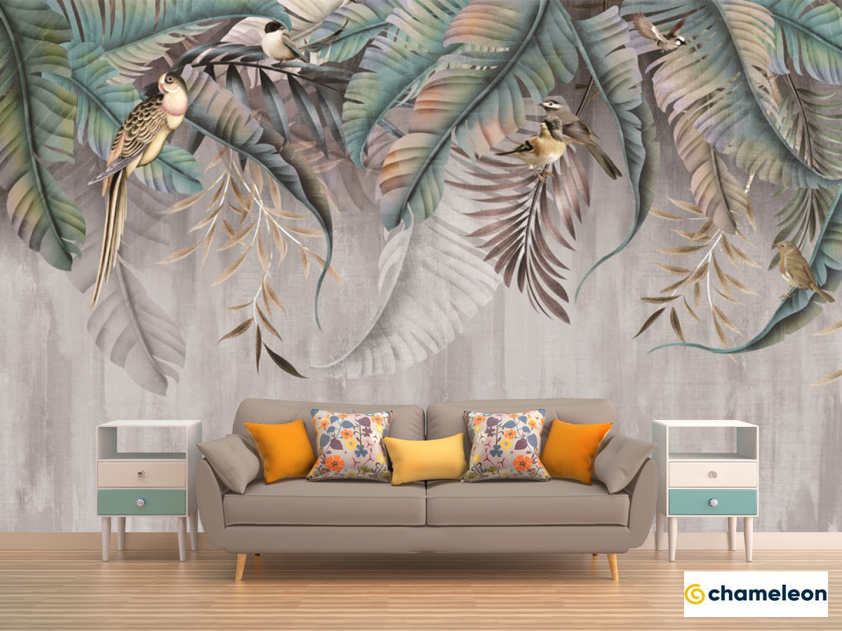 Фотообои «Фотообои Тропические листья с птицами», (арт. 29287) - купить в интернет-магазине Хамелеон