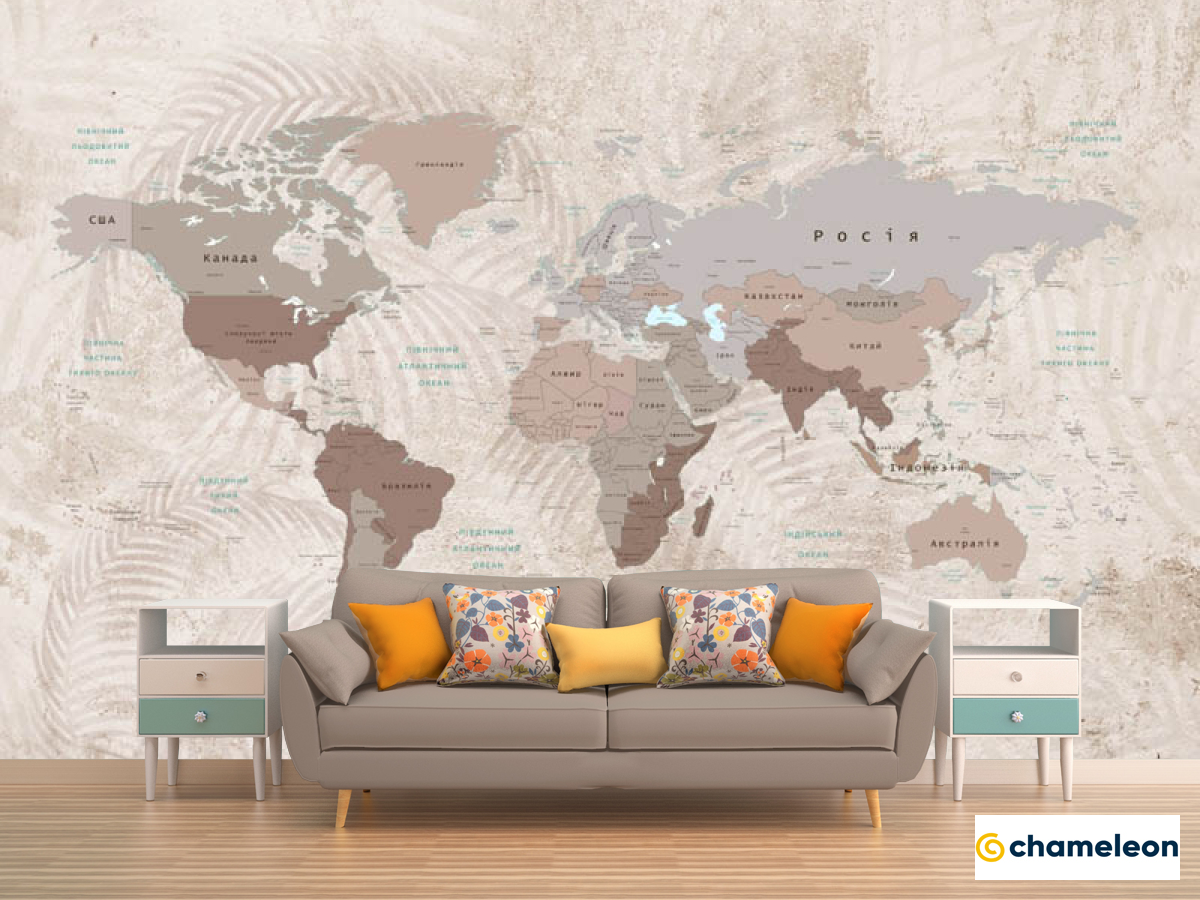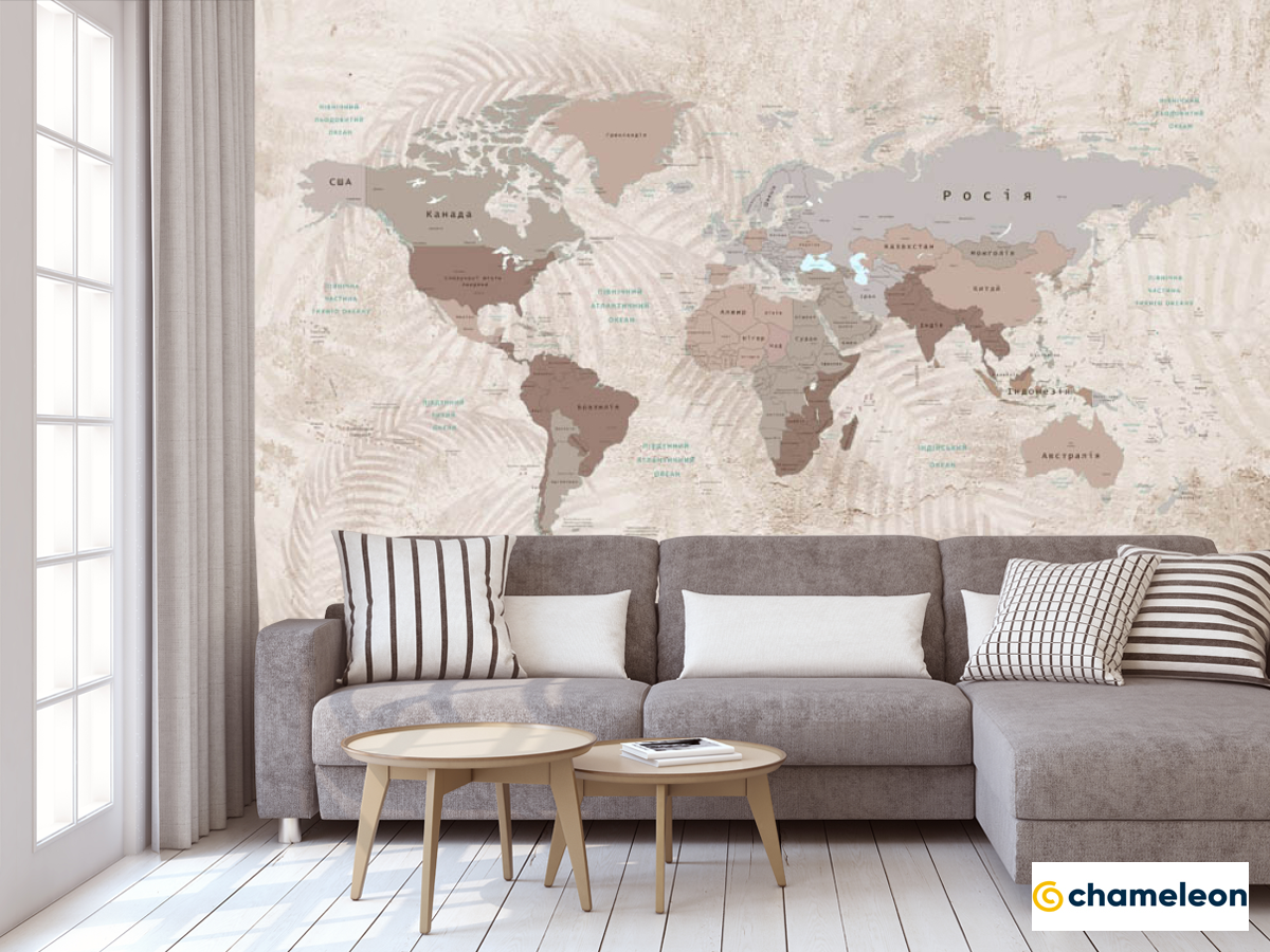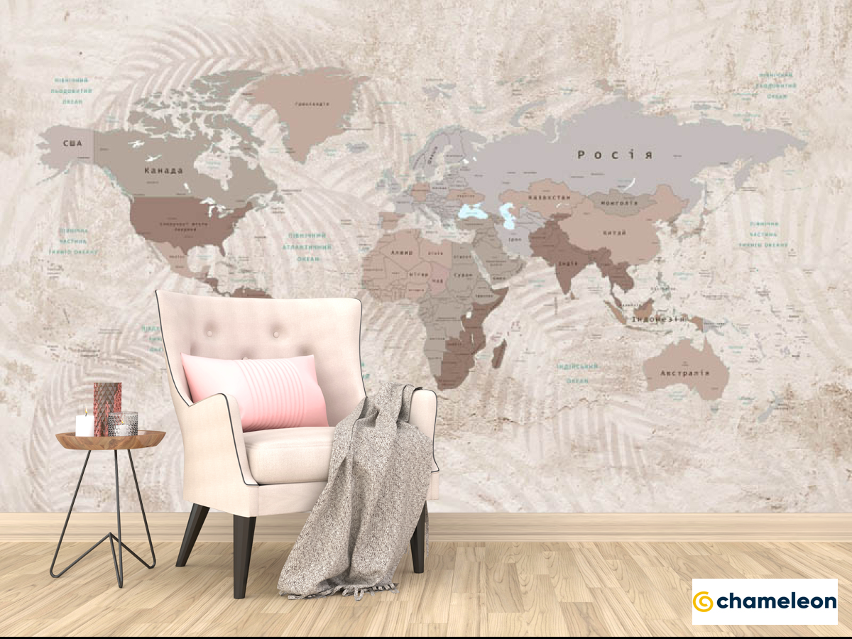 Фотообои «Фотообои Бежевая карта с ветками», (арт. 30019) - купить в интернет-магазине Хамелеон