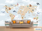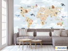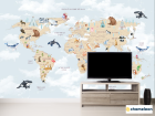 Фотообои Карта детская с облачками на украинском языке в синем цвете.