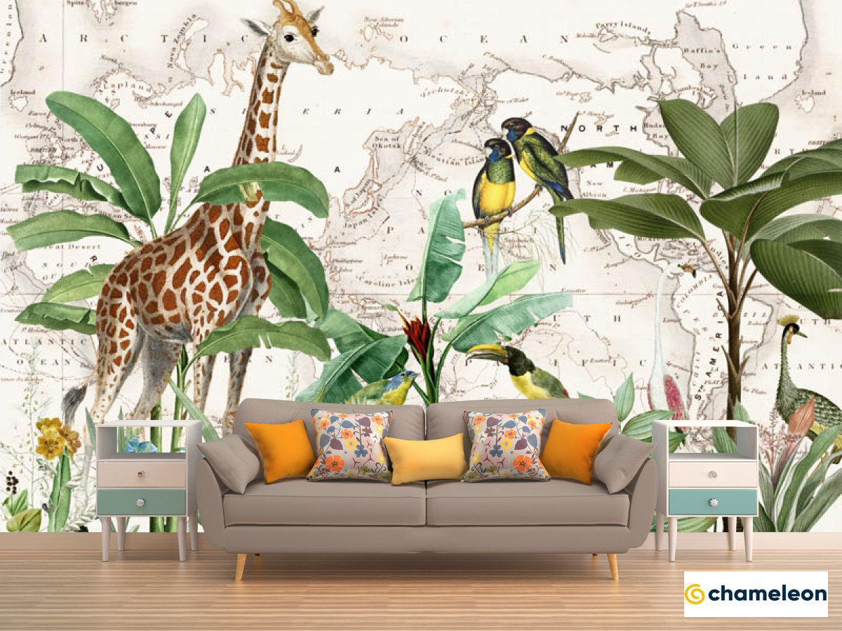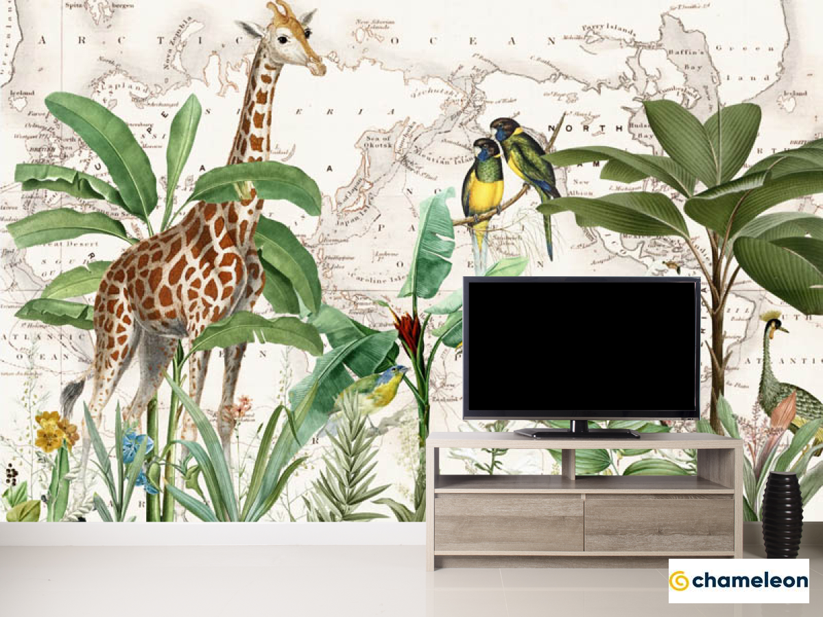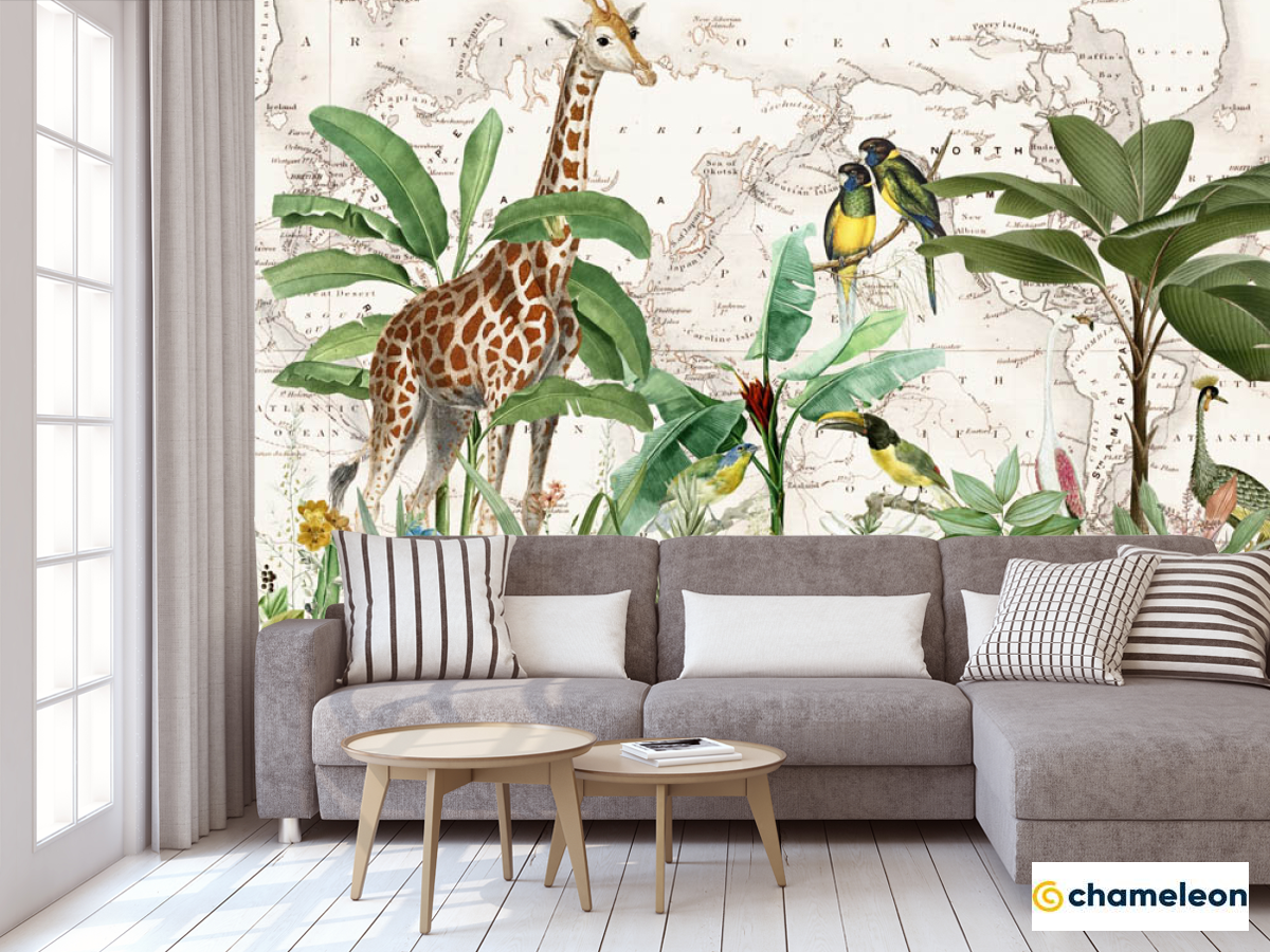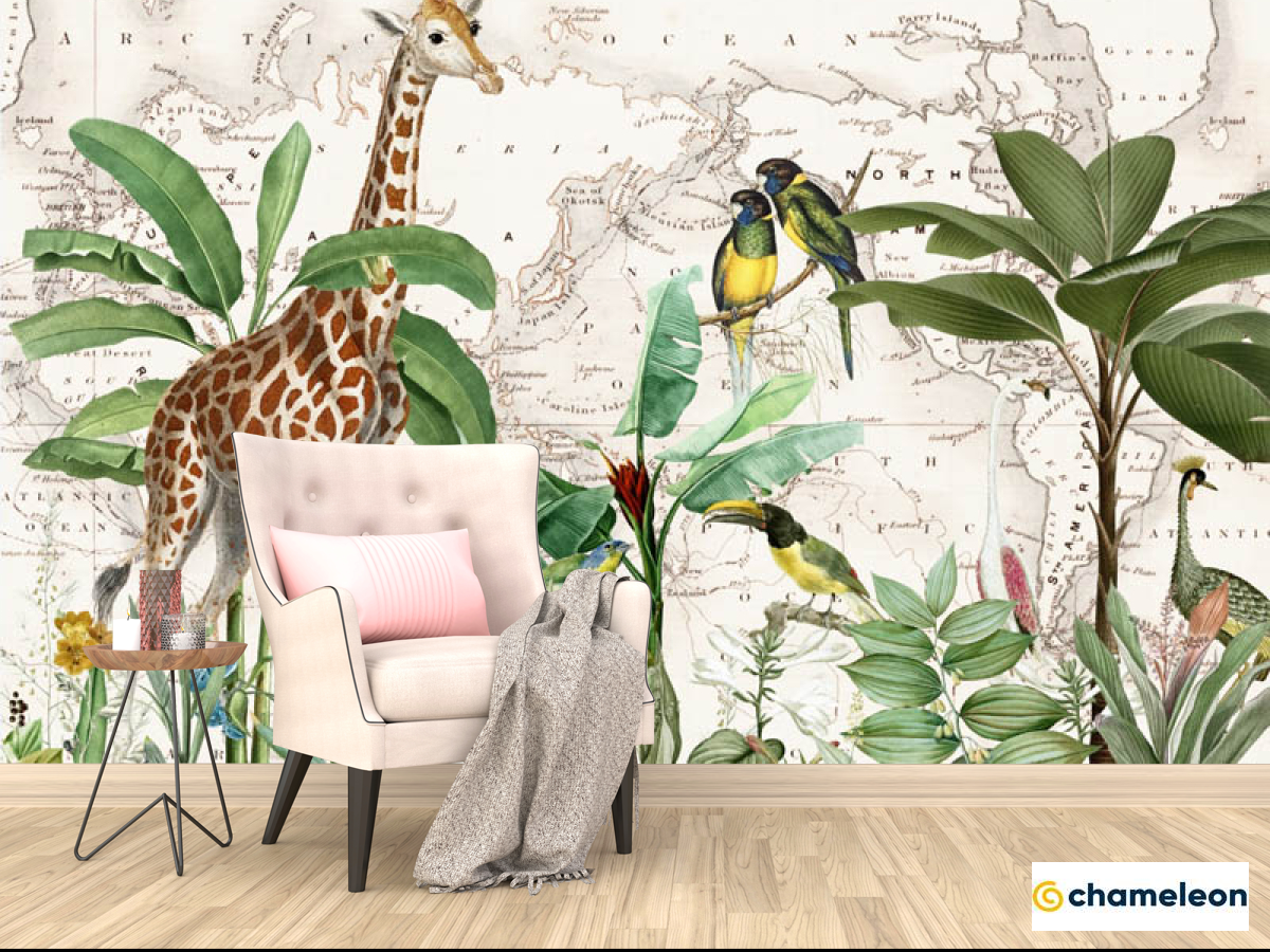 Фотообои «Фотообои Карта с жирафом», (арт. 30314) - купить в интернет-магазине Хамелеон