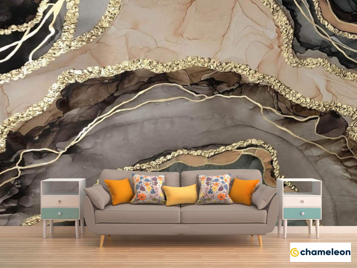 Фотообои «Фотообои Коричневый fluid art с золотом», (арт. 30598) - купить в интернет-магазине Хамелеон