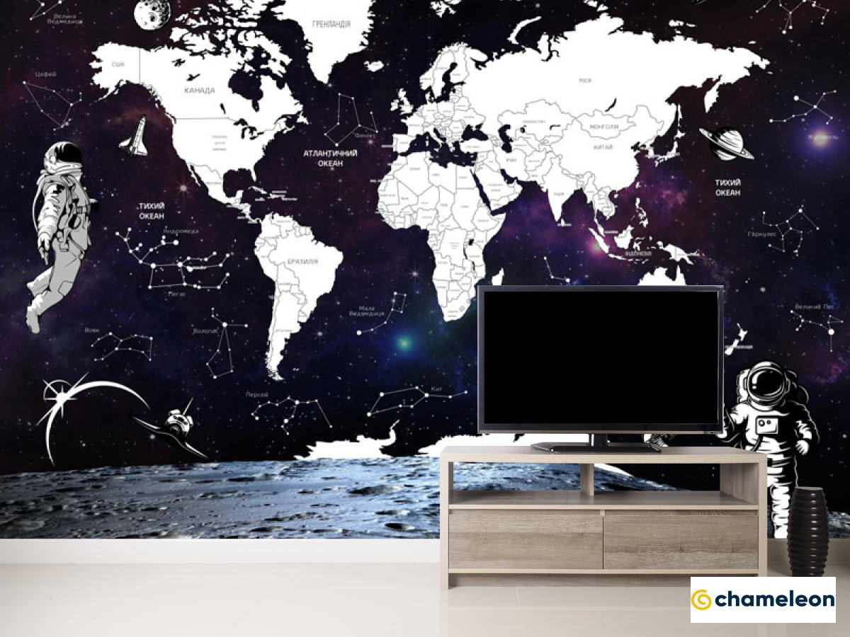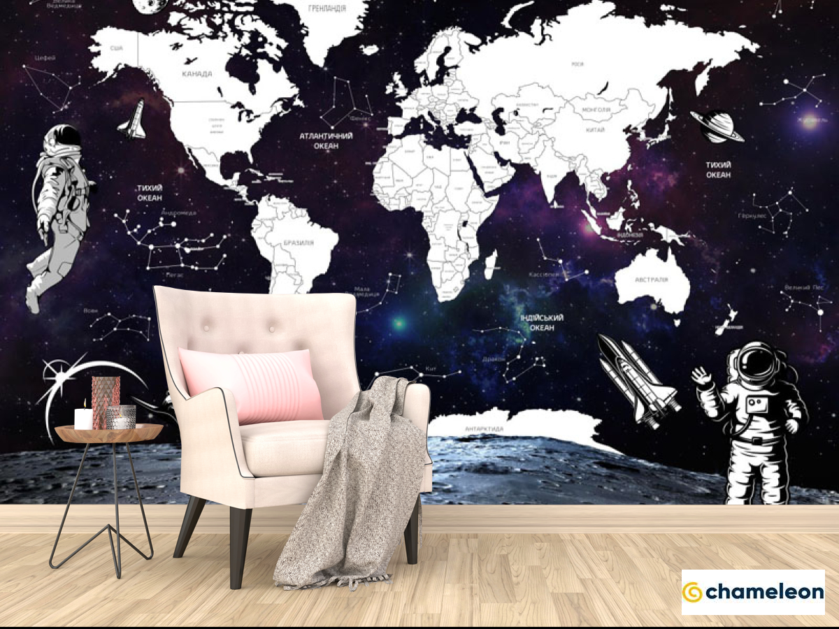 Фотообои «Фотообои Карта детская с космонавтом на украинском», (арт. 31734) - купить в интернет-магазине Хамелеон
