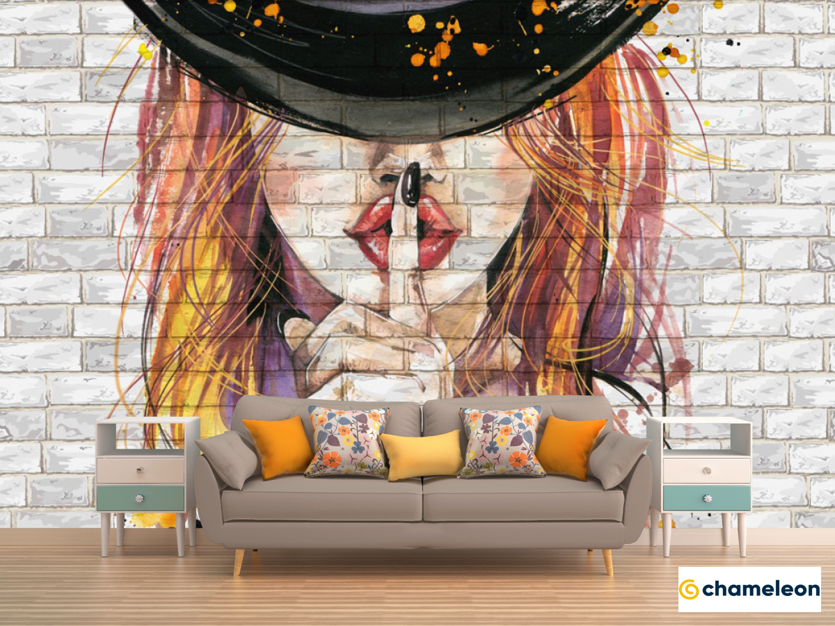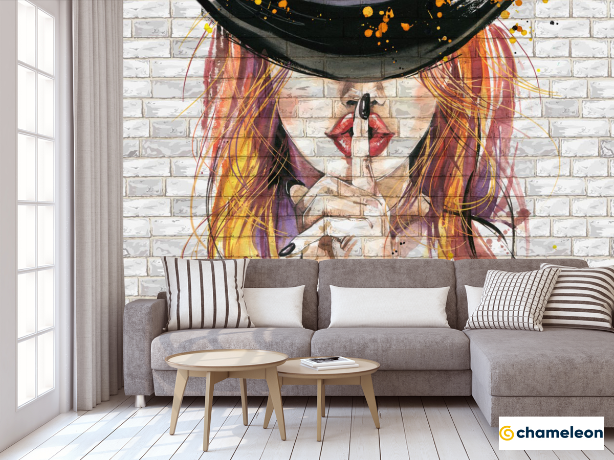 Фотообои «Фотообои дама в шляпе, кирпичная стена», (арт. 31753) - купить в интернет-магазине Хамелеон