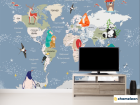 Фотообои Детская карта на украинском с животными