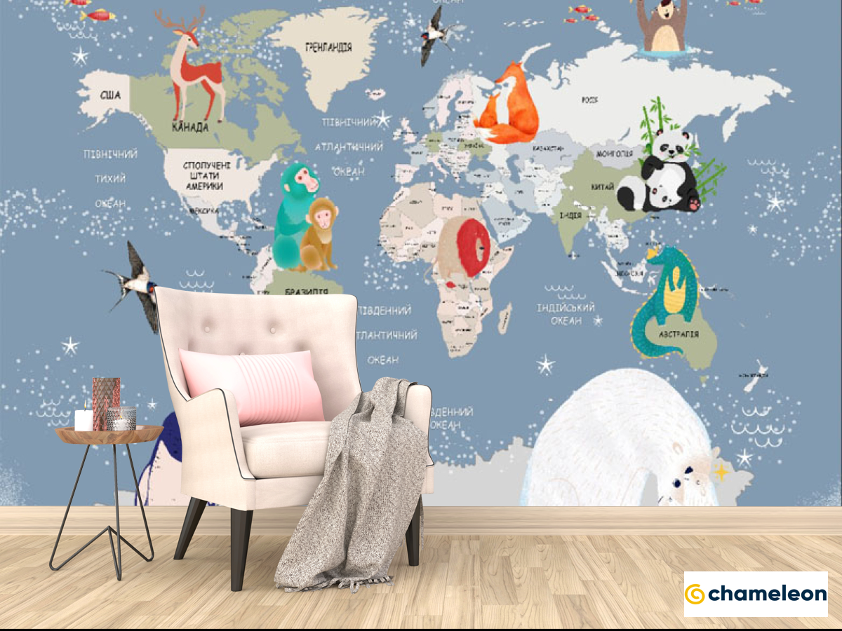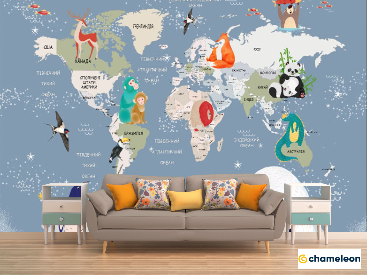 Фотообои «Фотообои Детская карта на украинском с животными», (арт. 31768) - купить в интернет-магазине Хамелеон